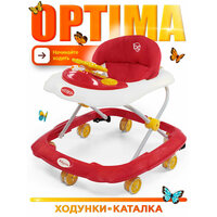 Ходунки OPTIMA помогут малышу сделать первые шаги, подарят ощущение защищенности и комфорта. \nВ ходунках ребенок зафиксирован и защищен от нежелательных столкновений и ушибов. Таким образом ничего не омрачит увлекательное изучение пространства дома.\nВ удобном кресле ребенок может отдохнуть и рассмотреть игровой центр на главной панели OPTIMA. \nОснащение поможет развить хватательный рефлекс и мелкую моторику рук, предусмотрены звуковые эффекты. \nОсобенности\n7 силиконовых колёс\n4 уровня высоты\nсъёмная игровая панель\nтекстиль можно снять для стирки\nРекомендовано для детей от 6 месяцев до 12кг\nИгровая панель со звуковыми эффектами\n\nХарактеристики\nВес ходунка 2,4 кг\nРазмер ходунка в разложенном состоянии 66х52х55 см\nРазмер ходунка в сложенном состоянии 66х52х17 см \nРазмер упаковки 66x58x44 см.