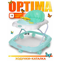 Ходунки OPTIMA помогут малышу сделать первые шаги, подарят ощущение защищенности и комфорта. \nВ ходунках ребенок зафиксирован и защищен от нежелательных столкновений и ушибов. Таким образом ничего не омрачит увлекательное изучение пространства дома.\nВ удобном кресле ребенок может отдохнуть и рассмотреть игровой центр на главной панели OPTIMA. \nОснащение поможет развить хватательный рефлекс и мелкую моторику рук, предусмотрены звуковые эффекты. \nОсобенности\n7 силиконовых колёс\n4 уровня высоты\nсъёмная игровая панель\nтекстиль можно снять для стирки\nРекомендовано для детей от 6 месяцев до 12кг\nИгровая панель со звуковыми эффектами\n\nХарактеристики\nВес ходунка 2,4 кг\nРазмер ходунка в разложенном состоянии 66х52х55 см\nРазмер ходунка в сложенном состоянии 66х52х17 см \nРазмер упаковки 66x58x44 см.