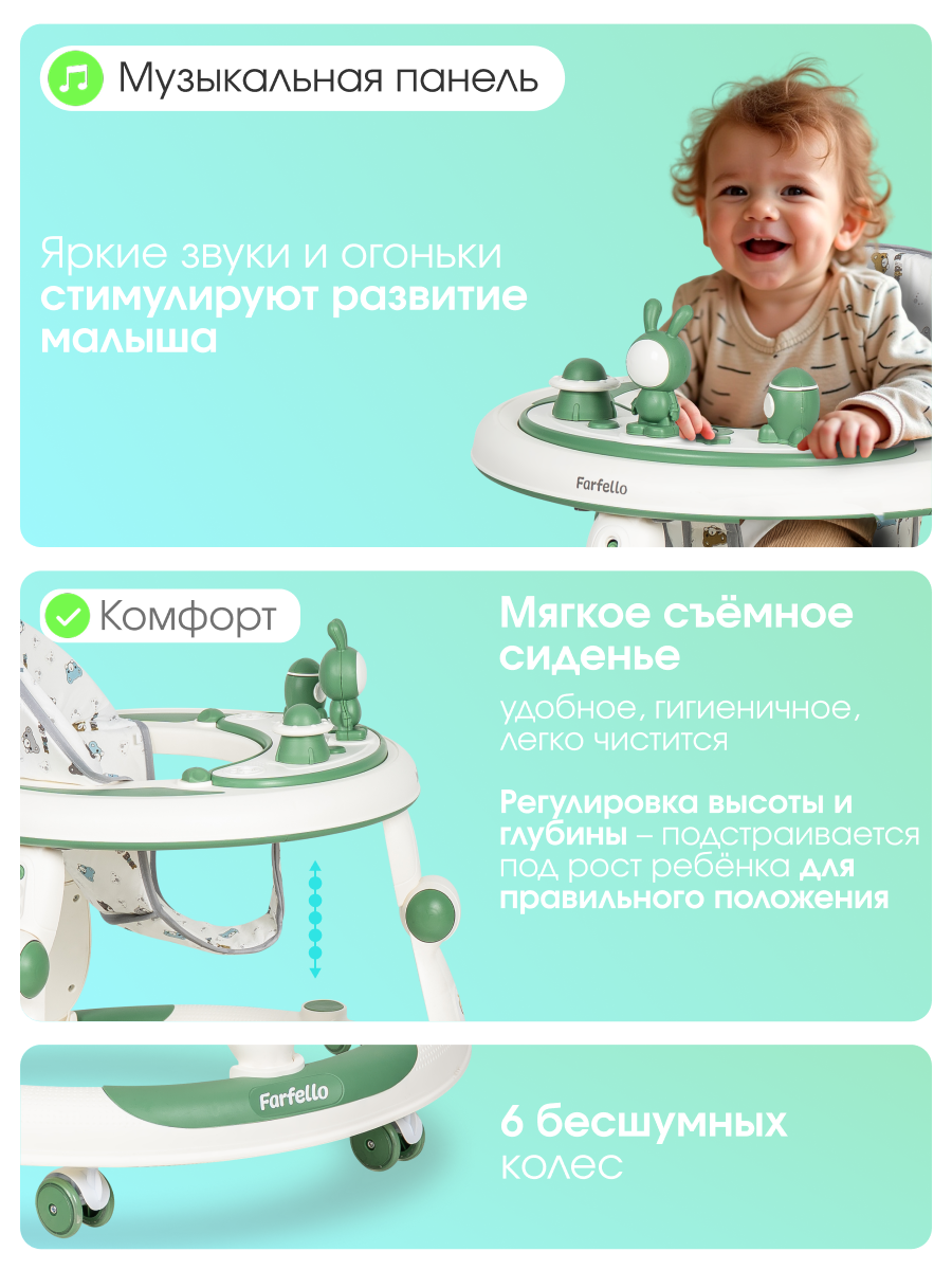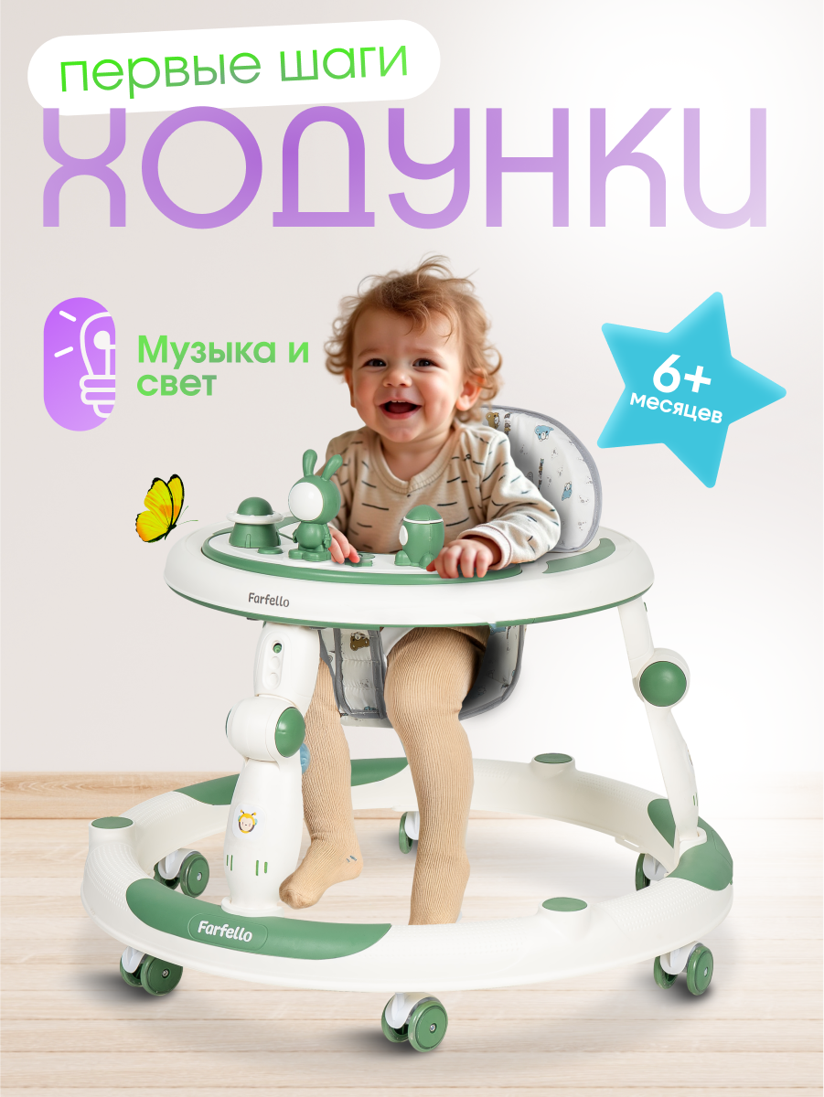 Ходунки детские Farfello A2, для детей от 6 до 18 месяцев, до 12 кг, игровая панель, цвет зеленый: сравнение цен, характеристики, фото, актуальное наличие и цены.