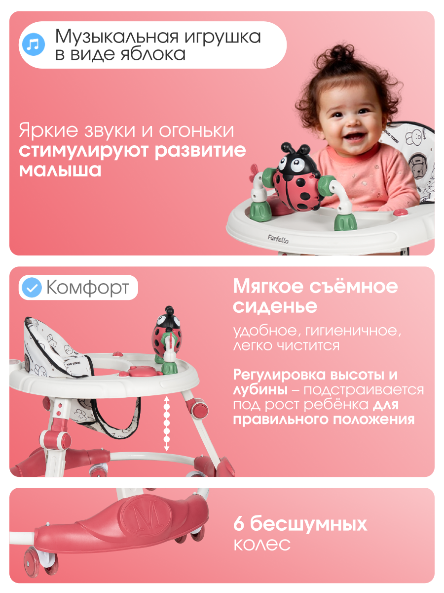 Ходунки детские Farfello A3, для детей от 6 до 18 месяцев, до 12 кг, игровая панель, цвет красный: сравнение цен, характеристики, фото, актуальное наличие и цены.
