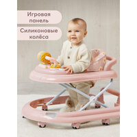 Ходунки детские Happy Baby SMILEY V2, с игровой панелью, 12 мелодий, регулировка сиденья, силиконовые колесики, розовые: сравнение цен, характеристики, фото, актуальное наличие и цены.