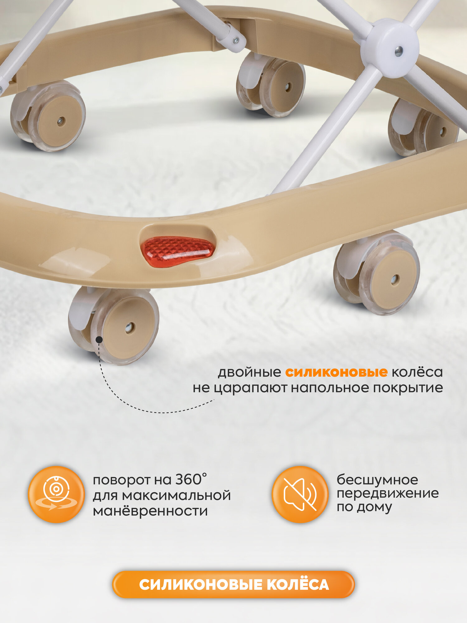 Ходунки детские музыкальные Indigo Весело шагать С, с игровой панелью, 8 силиконовых колес, бежевый: сравнение цен, характеристики, фото, актуальное наличие и цены.