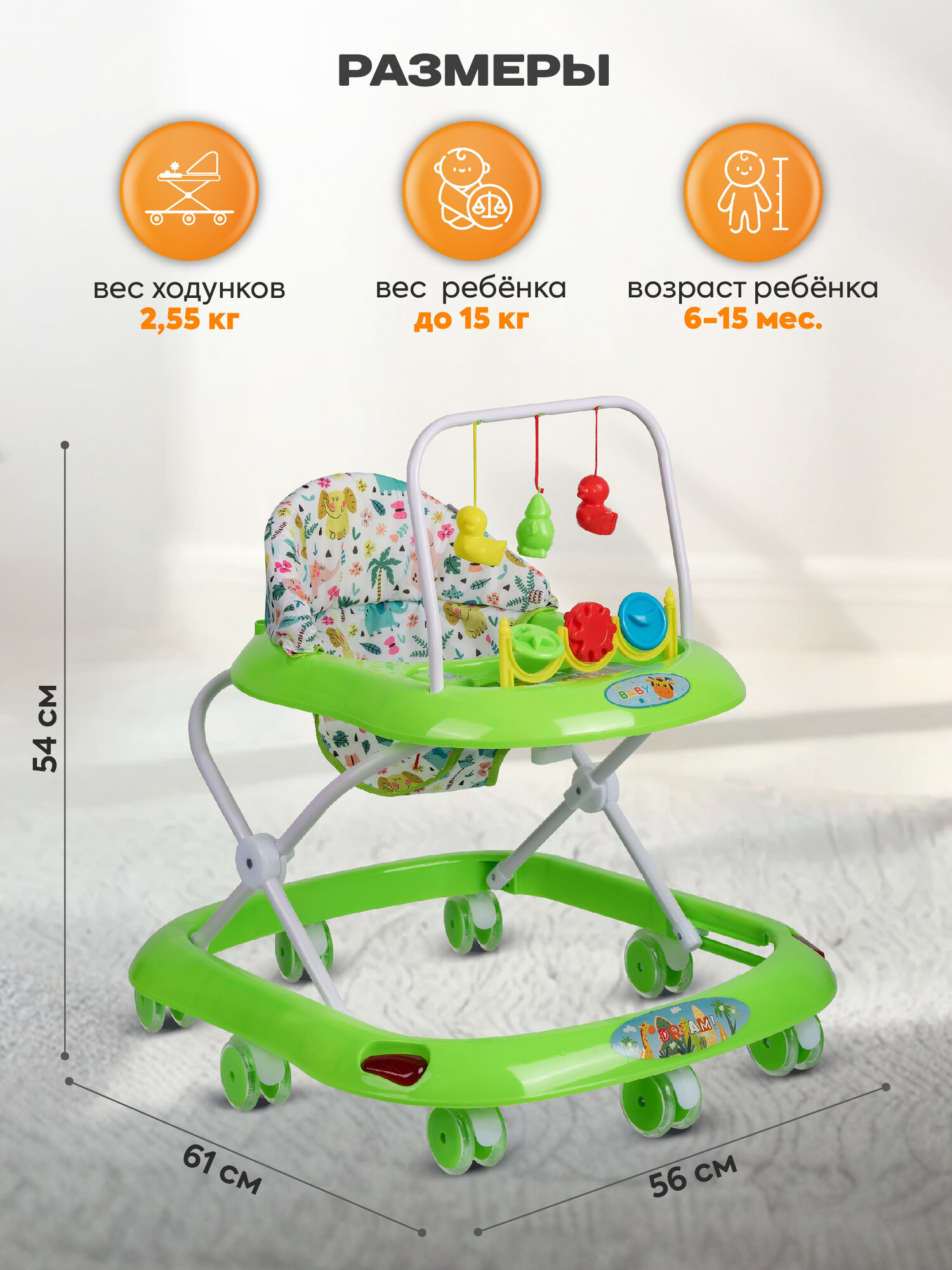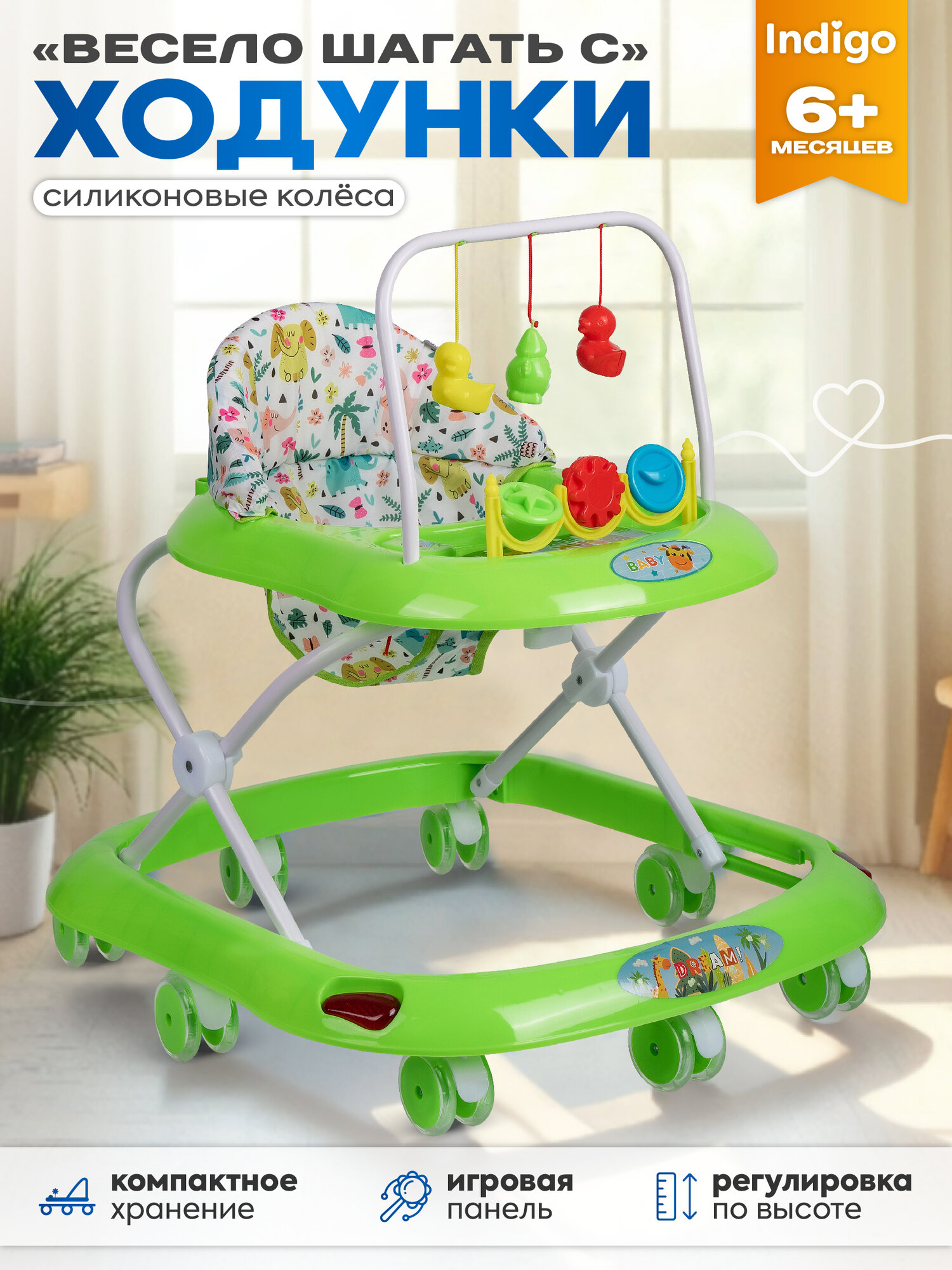 Купить Ходунки детские музыкальные Indigo Весело шагать С, с игровой панелью, 8 силиконовых колес, зеленый с доставкой по всей России.