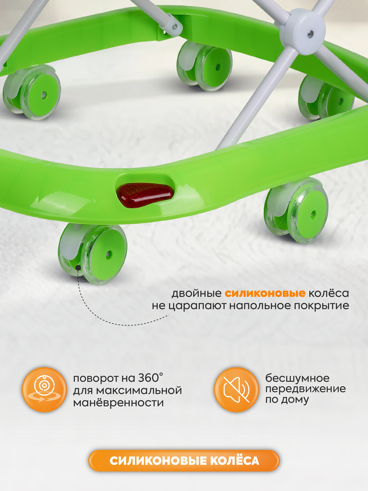 Ходунки детские музыкальные Indigo Весело шагать С, с игровой панелью, 8 силиконовых колес, зеленый: сравнение цен, характеристики, фото, актуальное наличие и цены.