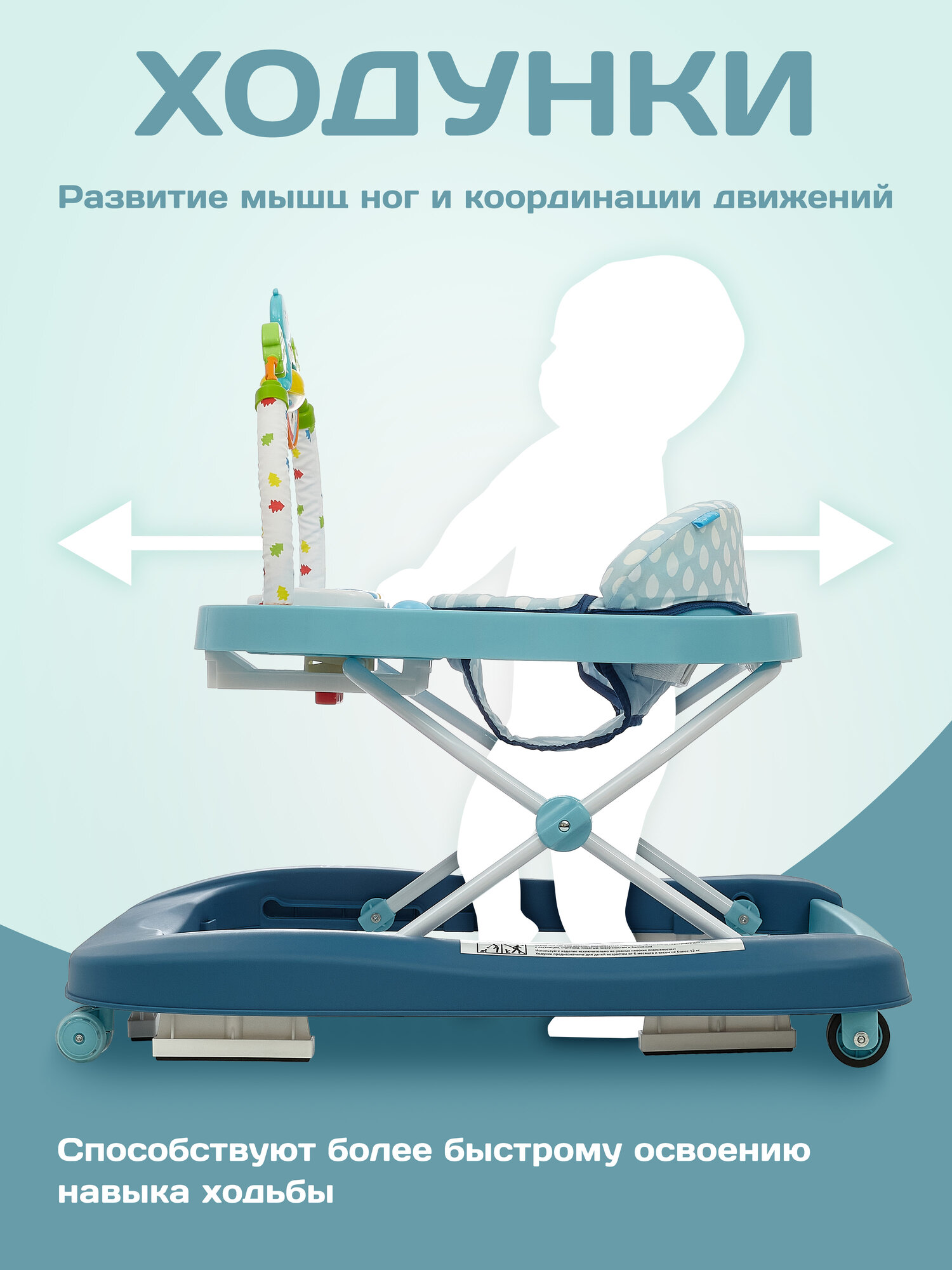 Ходунки Nuovita Avvio предназначены для детей в возрасте от 6 месяцев и рассчитаны на вес до 12 кг. Модель 2 в 1 совмещает в себе ходилки и толкатель, обладает особенной, тщательно продуманной конструкцией. Изделие оснащено 4 колесами со стопорами безопасности, электронным игровым блоком, световыми и звуковыми эффектами. Скорость вращения задних резиновых колесиков при необходимости можно уменьшить. С этой целью используется встроенный винт. Громкость звука игрового центра со светом и музыкой является регулируемой. Модель оснащена мягким сидением эргономичной формы, обеспечивающим надежную поддержку спины. В таком уникальном приспособлении с подсветкой можно сидеть и ходить, если же ребенок хочет его толкать, достаточно убрать заднюю перекладину. Ходунки со столиком и забавными игрушками, цветными деталями разнообразной формы обеспечивают ребенку полный комфорт и безопасное передвижение. На столе предусмотрена игрушечная панель, которую можно использовать даже отдельно. Для удобной переноски на ней предусмотрен ремешок. Высота изделия является регулируемой, может устанавливаться в 3 положениях. За счет этого в ходунках свои первые шаги будет удобно делать как в 6 месяцев, так и в годик. Интерактивное приспособление идеально подходит для веселых игр, занятий, выполнения обучающих заданий, способствует полноценному развитию малыша. Многофункциональные ходунки с металлическим основанием, стопорами для дополнительной защиты обладают невероятно красивым, стильным видом и станут настоящей находкой - помощником для молодых родителей. Модель изготовлена из качественных, долговечных, безопасных для малышей материалов, является универсальной, подойдет как для девочек, так и мальчиков. Нужно лишь выбрать среди предложенного ассортимента подходящую расцветку. Например, зеленую, голубую, розовую, розовато-серую или серо-зеленую. Ходунки превосходно впишутся в домашний интерьер и будут активно использоваться каждый день до того момента, пока ребенок не научится самостоятельно ходить. От их применения при этом будет отмечаться исключительно польза. Универсальное приспособление можно подарить новоиспеченным родителям и малышу на любой праздник, будь то выписка из роддома, крещение, Новый год или рождество.