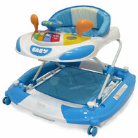 Модель 3 в 1 Nuovita Carrozza объединяет в себе сразу три приспособления: ходунки, качалку и стульчик для кормления. Многофункциональное изделие предназначено для детей с 6 месяцев и весом до 12 кг, легко трансформируется и обеспечивает малышам безопасное передвижение. На ходунках предусмотрено 4 пластиковых колеса с резиновым покрытием. Передние колесики на ходунках являются поворотными. Для полноценной защиты предусмотрены стопоры безопасности, блокираторы. Конструкция выполнена из металлических труб и устойчивого к нагрузкам и ударам пластика. В таком приспособлении можно сидеть, как на качелях, или ходить, толкая его ножками. Чтобы преобразовать ходилки в качели, достаточно перевести боковые части основания в вертикальное положение. При этом они мгновенно преобразуются в 2 широкие дуги. Все детали напольной развивашки продуманы до мелочей. Модель оснащена электронной игровой панелью с подсветкой и музыкой. Благодаря световым и звуковым эффектам, такой блок с кнопочками будет активно использоваться для веселых игр и занятий, станет любимой игрушкой маленьких мальчиков и девочек первого года жизни. Музыкальная модель с игрушечным центром и столиком, симпатичным и стильным внешним видом, поможет малышу сделать первые шаги с легкостью и удовольствием. Изделие оснащено удобным столом и мягким сидением эргономичной формы, обеспечивающим надежную поддержку спины. Высота сидения регулируется, может устанавливаться в трех положениях. За счет этого в ходунках комфортно будет ребенку как в годик, так и в более раннем или позднем возрасте. Уникальная качалка - толкатель станет особенным и незаменимым помощником для родителей, бабушек и дедушек. Музыкальная модель ходунков способствует развитию малыша, позволяет выполнять несложные задания. Обучающая интерактивная модель со светом и звуком изготовлена из качественных безопасных материалов, является универсальной и многофункциональной. Представлена в разных цветах. Среди предложенного ассортимента можно выбрать черные, зеленые, голубые, оранжевые, розовые, красные или фиолетовые ходунки. Они обязательно принесут огромную пользу и будут отличным подарком для малышей и их родителей. Преподнести универсальное приспособление можно на крестины, Новый год, рождество и по любому другому поводу. Независимо от того, по какому случаю преподносится презент, он обязательно вызовет восторг и будет оценен по достоинству.