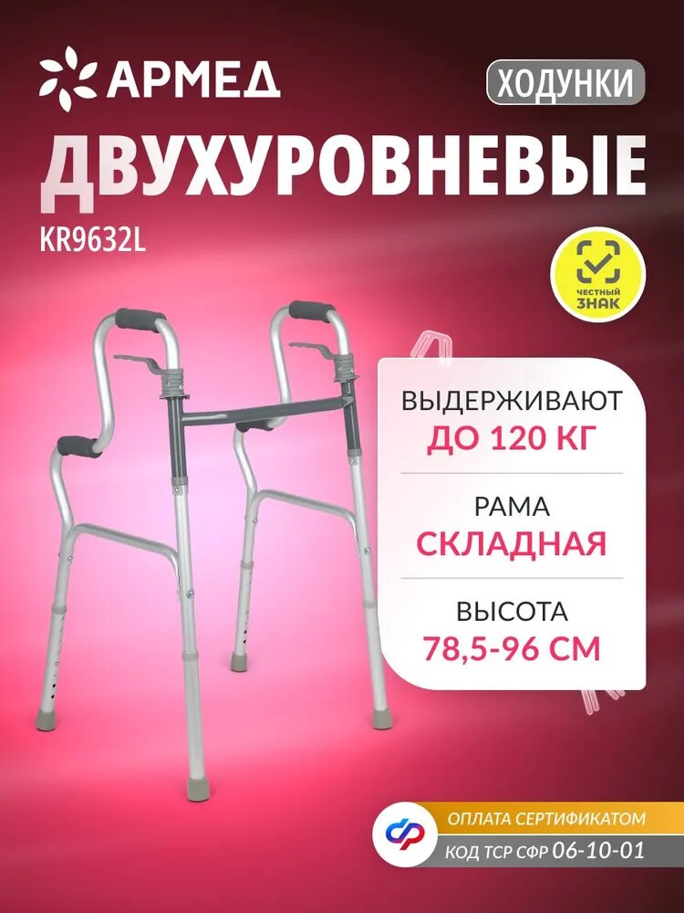 Ходунки Армед KR9632L обладают высокой грузоподъемностью 120 кг и двухуровневой конструкцией .