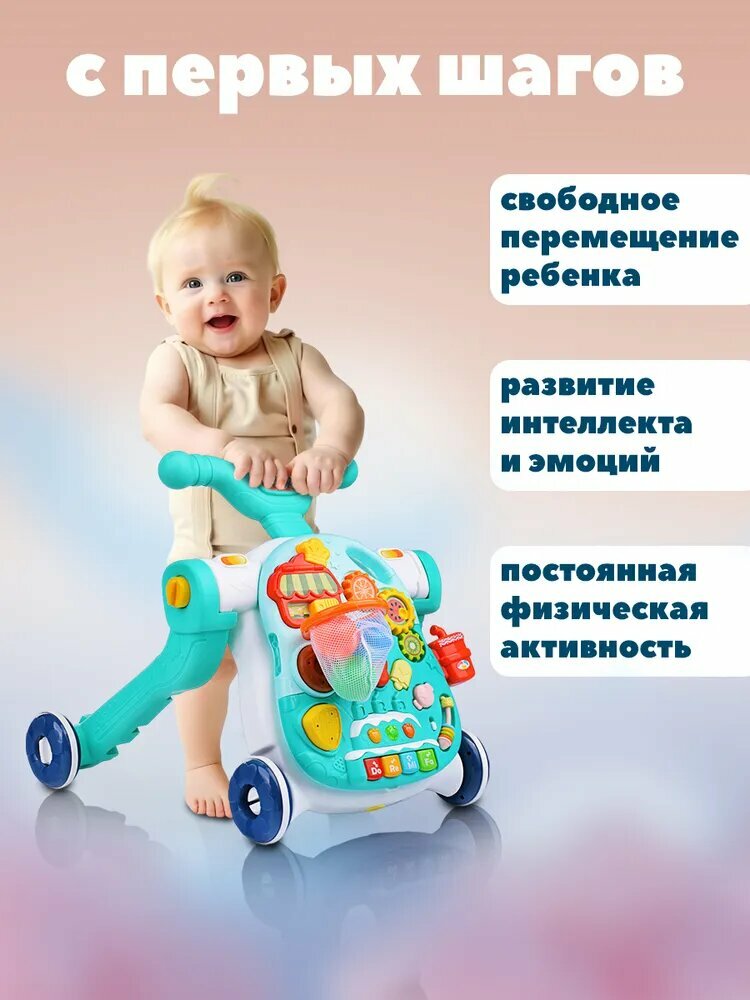 Купить Ходунки-каталка для детей / Развивающий игровой центр для малышей Y0073 4 в 1 (ходунки, каталка, самокат, игровой столик) в коробке Я познаю мир! с доставкой по всей России.