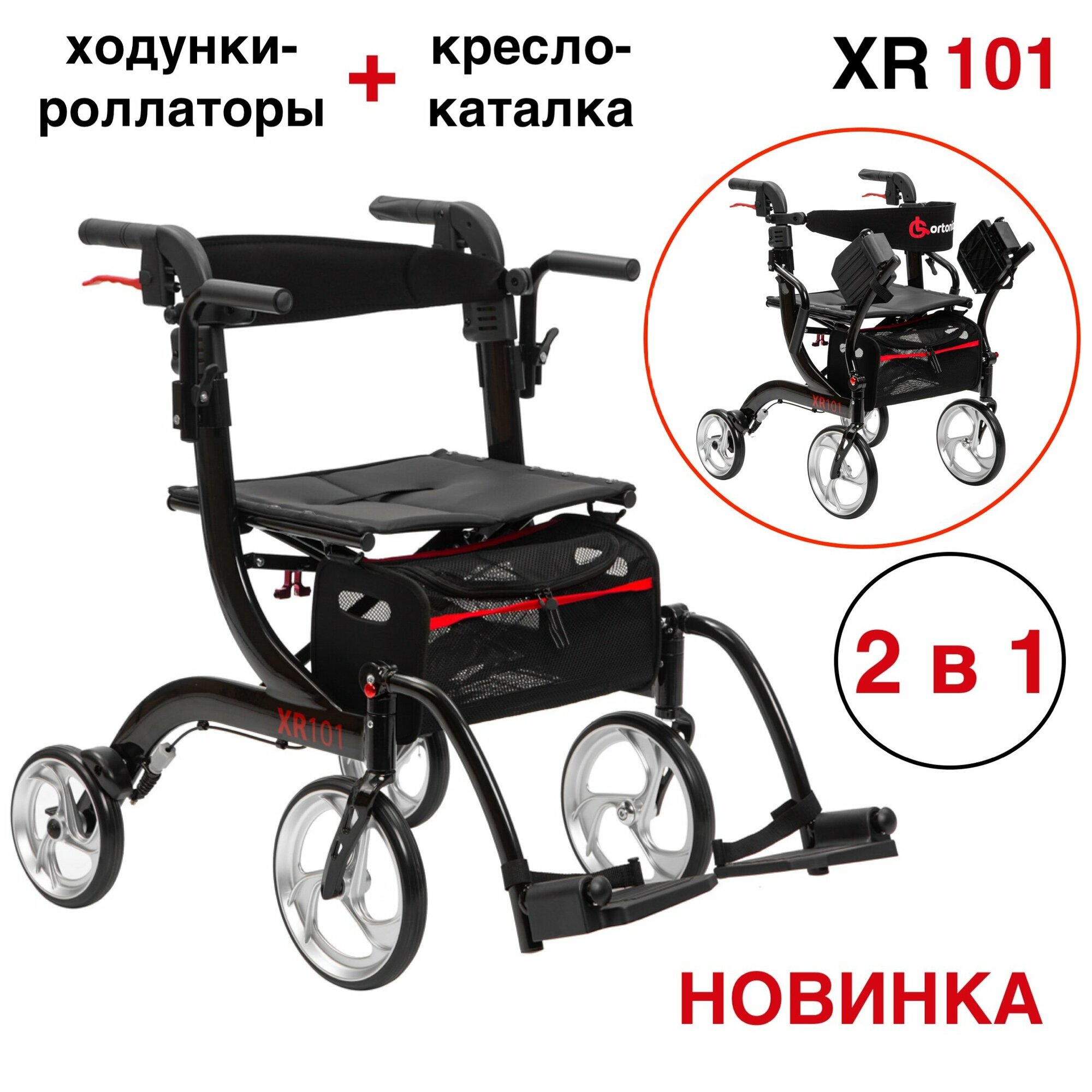 Купить Ходунки-роллаторы-каталка Ortonica XR 101 для пожилых и инвалидов складные с сиденьем подлокотниками подножками 4 колеса легкие регулируемые по высоте до 110 кг черная рама с доставкой по всей России.