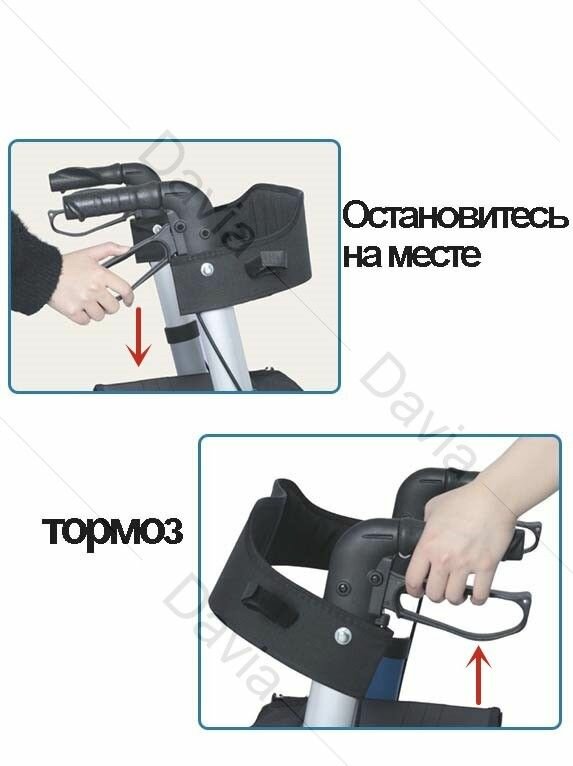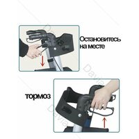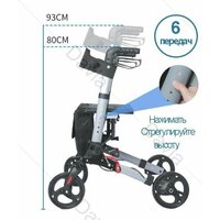 Ходунки ролаторы можно зафиксировать, чтобы безопасно сесть, для этого необходимо нажать на ручки тормоза вниз, для активации стояночного тормоза. Передние колеса - самоориентирующиеся, задние - фиксированные. Диаметр колес: передние -8 in (самоориентирующиеся), задние -8 in (фиксированные).
