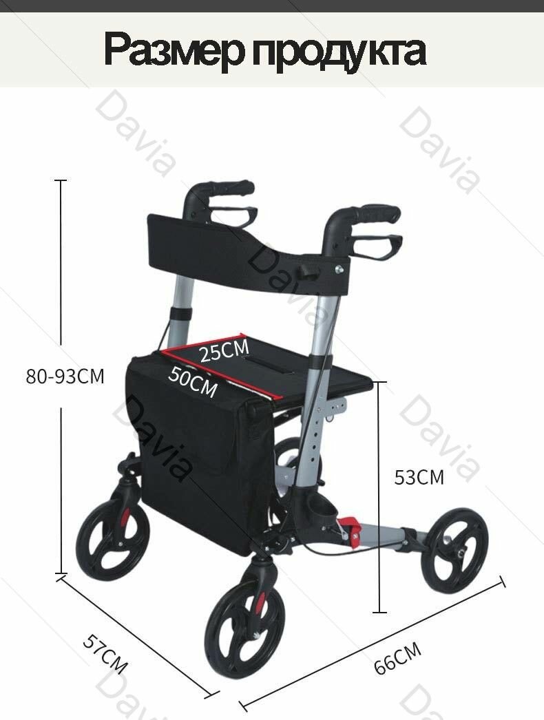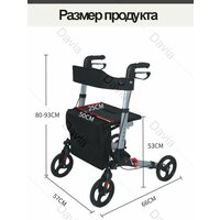 Медицинские ходунки-роллаторы можно использовать как опоры-ходунки с возможностью блокировки колес, а на удобном сиденье из нейлона всегда можно отдохнуть во время прогулки. Высота сидения не регулируется, составляет 53 см от пола.