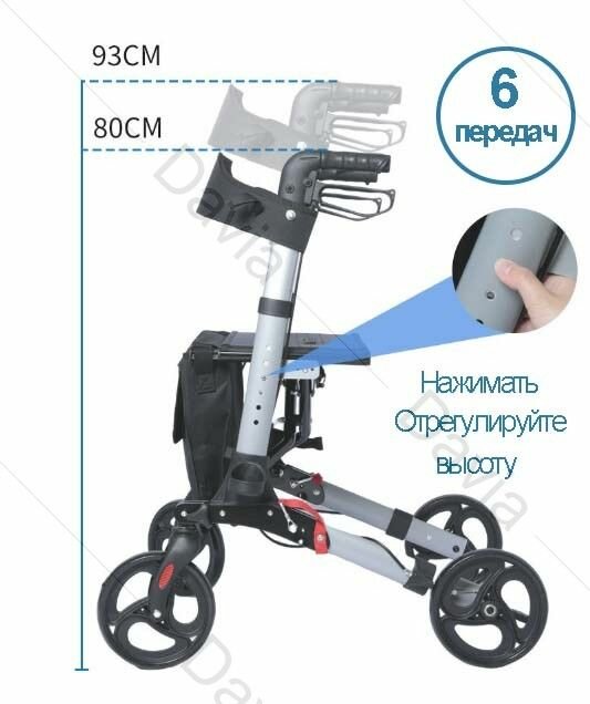 Высота ручек ходунков роллаторов регулируется от 80 до 93 см и подойдет (ориентировочно!) на рост от 165 до 185 см. Чтобы определить правильно высоту ходунков ролляторов необходимо: 1. Встать с расслабленными руками. 2. Слегка согнуть руки в локтях, не поднимая плечи. 3. Измерить расстояние между запястьем и полом. Эта высота и будет идеальной для вас. Опираясь на эти измерения (если они попадают в диапазон 80-92 см) приобретайте ходунки-роллаторы!