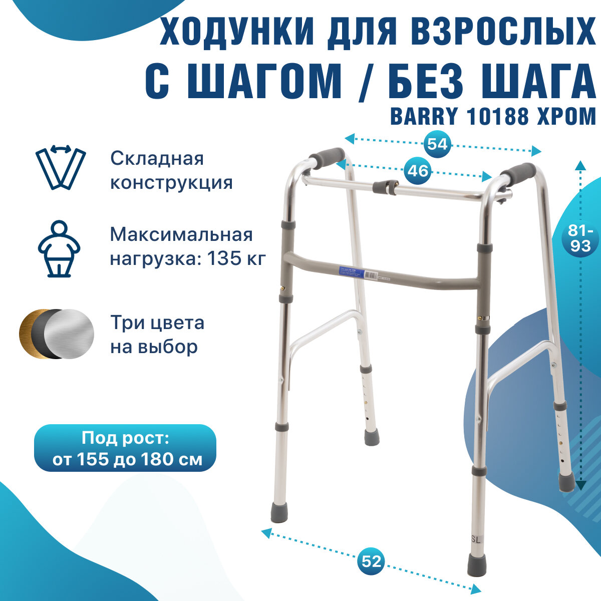Ходунки для пожилых складные, шагающие, регулируются по высоте, нагрузка до 135 кг, Barry 10188: сравнение цен, характеристики, фото, актуальное наличие и цены.