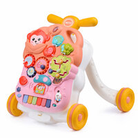 Ходунки детские Happy Baby SMILEY V2, с игровой панелью, 12 мелодий, регулировка сиденья, силиконовые колесики, розовые