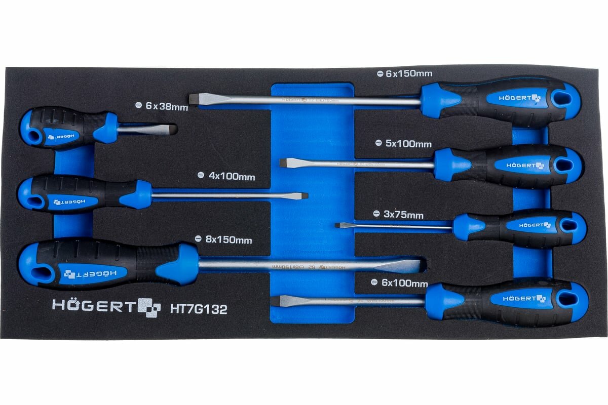 Купить HOEGERT TECHNIK Набор отверток плоских 7 шт, ложемент EVA HT7G132 с доставкой по всей России.