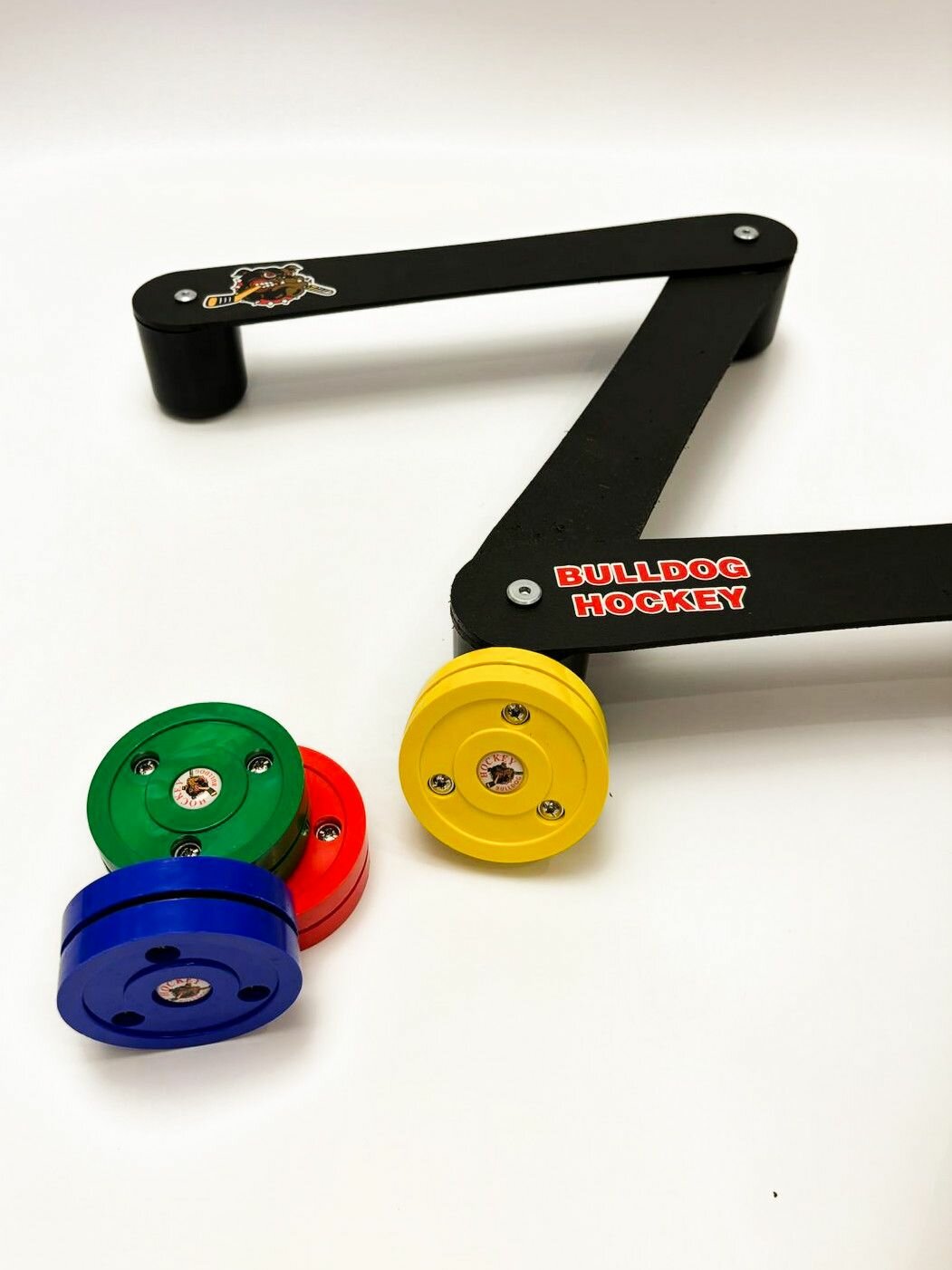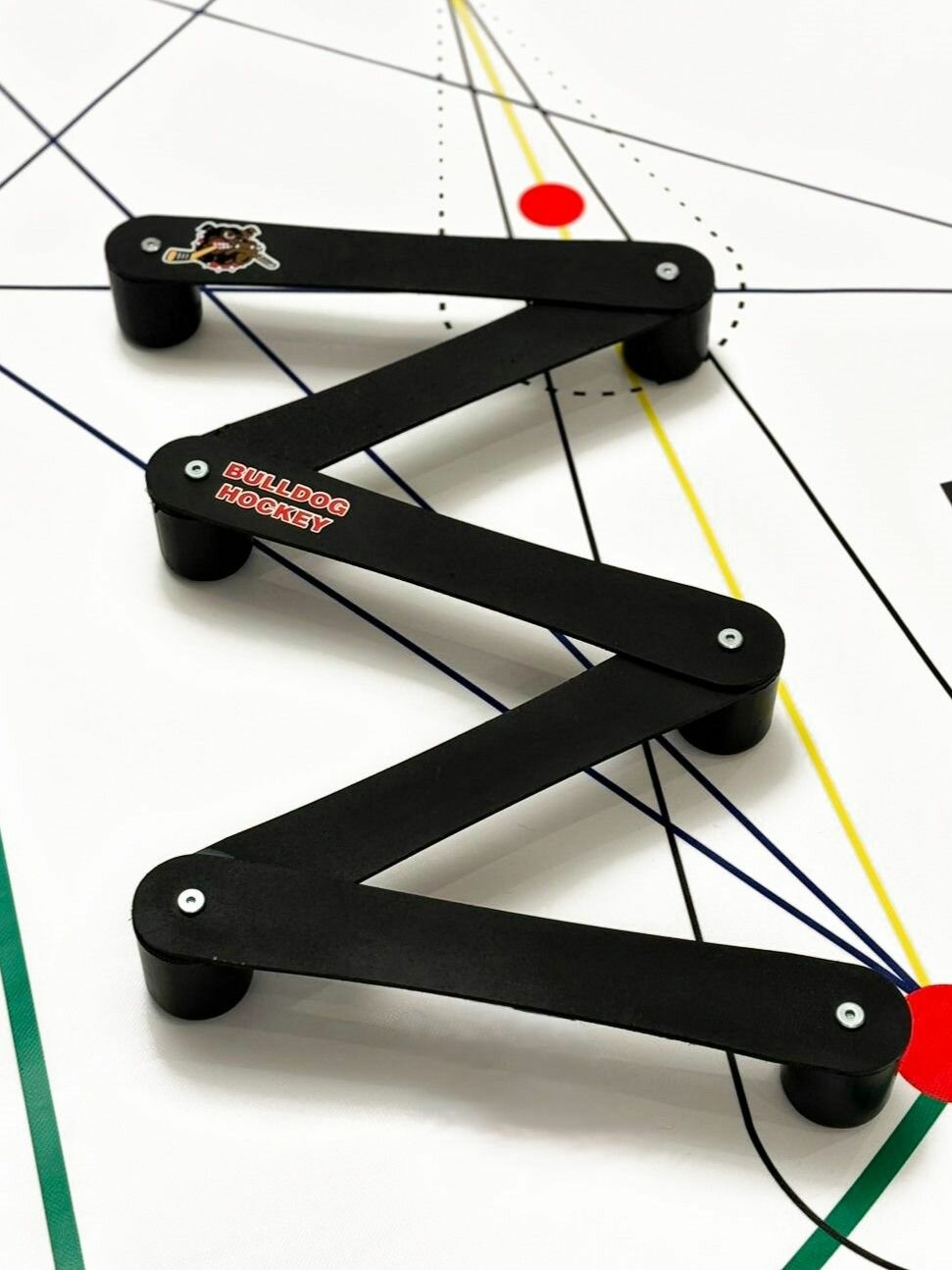 Наш самый универсальный тренажер для владения клюшкой! Узнайте, почему хоккеисты и тренеры всех уровней в восторге от змейки Bull Dog Hockey. Свобода создавать больше индивидуальных, ситуативных упражнений, которые дадут вам преимущество на льду и вне льда. Изучите все, от базовых движений до подкидок над клюшкой соперника. Прочные, легкие, пластиковые планки. Позволяют вам установить змейку, как вам нужно, благодаря вращающимся точкам поворота. Змейка является отличным путем в хоккейной практике, развивая молниеносное перемещение шайбы вокруг препятствий. С этим устройством вы сможете практиковать проходы вокруг препятствий и под препятствиями, что поможет хоккеистам работать над точностью своих проходов через коньки игроков, и также под клюшками игроков.