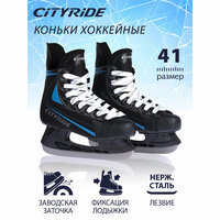 Купить Хоккейные коньки ТМ City-Ride, лезвия нержавеющая сталь/заводская заточка, ботинки нейлон/ПВХ, чёрный/синий, 41 с доставкой по всей России.