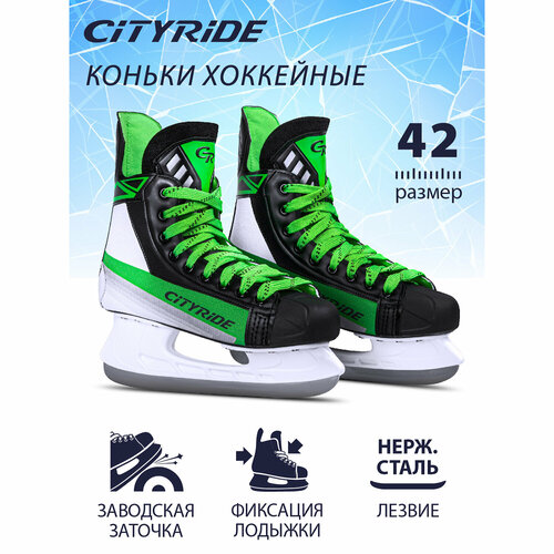 Купить Хоккейные коньки ТМ City-Ride, лезвия нержавеющая сталь/заводская заточка, ботинки нейлон/ПВХ, чёрный/зеленый, 42 с доставкой по всей России.