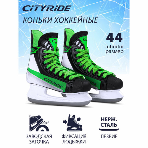 Купить Хоккейные коньки ТМ City-Ride, лезвия нержавеющая сталь/заводская заточка, ботинки нейлон/ПВХ, чёрный/зеленый, 44 с доставкой по всей России.
