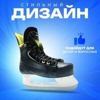 Модель представлена в черном цвете, что придает им стильный и современный вид. Также есть возможность приобрести дополнительные товары экипировки для хоккея – защиту, шлем, клюшку, чтобы полностью экипировать себя перед игрой. В ассортименте имеются женские фигурные и детские раздвижные коньки.