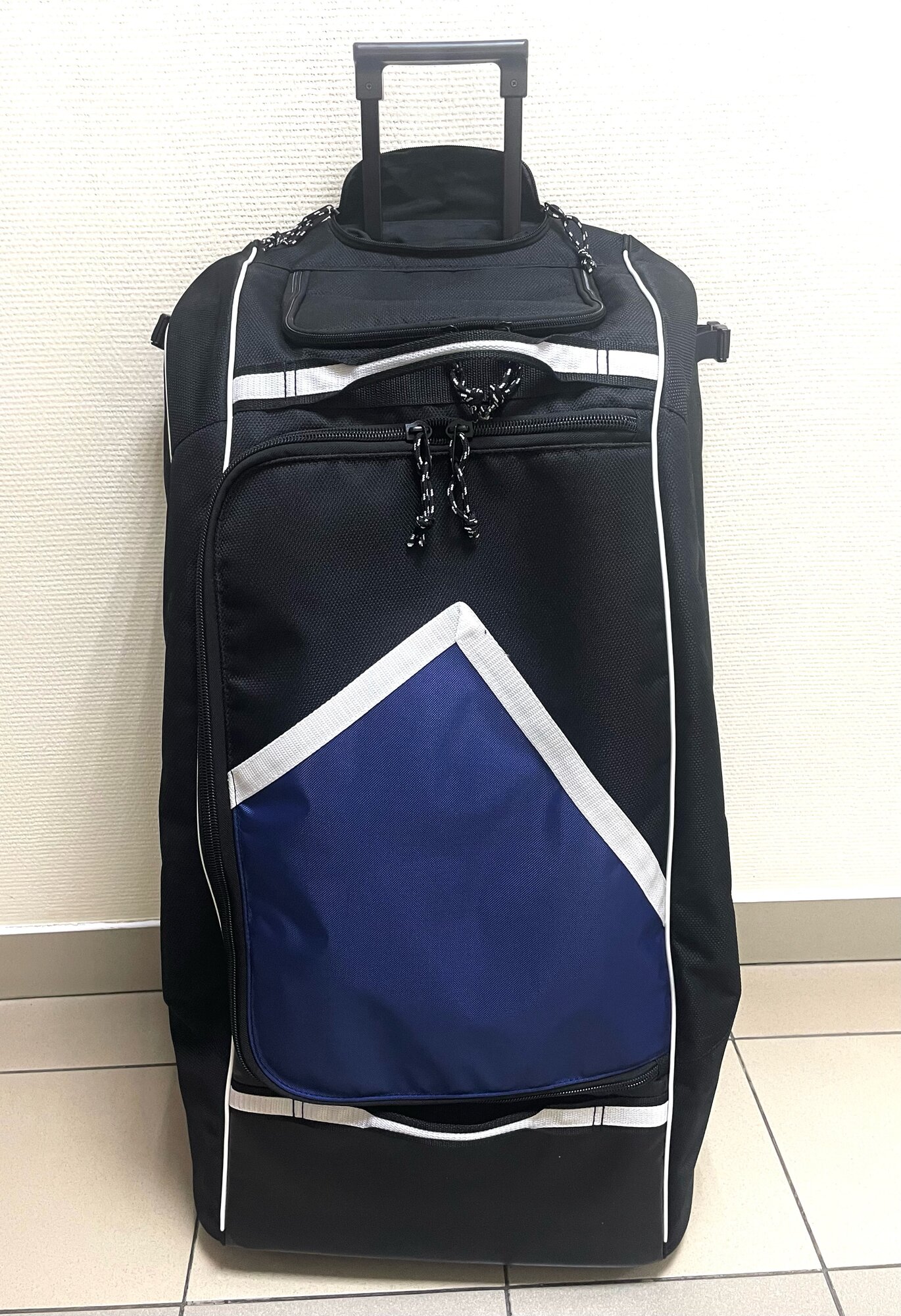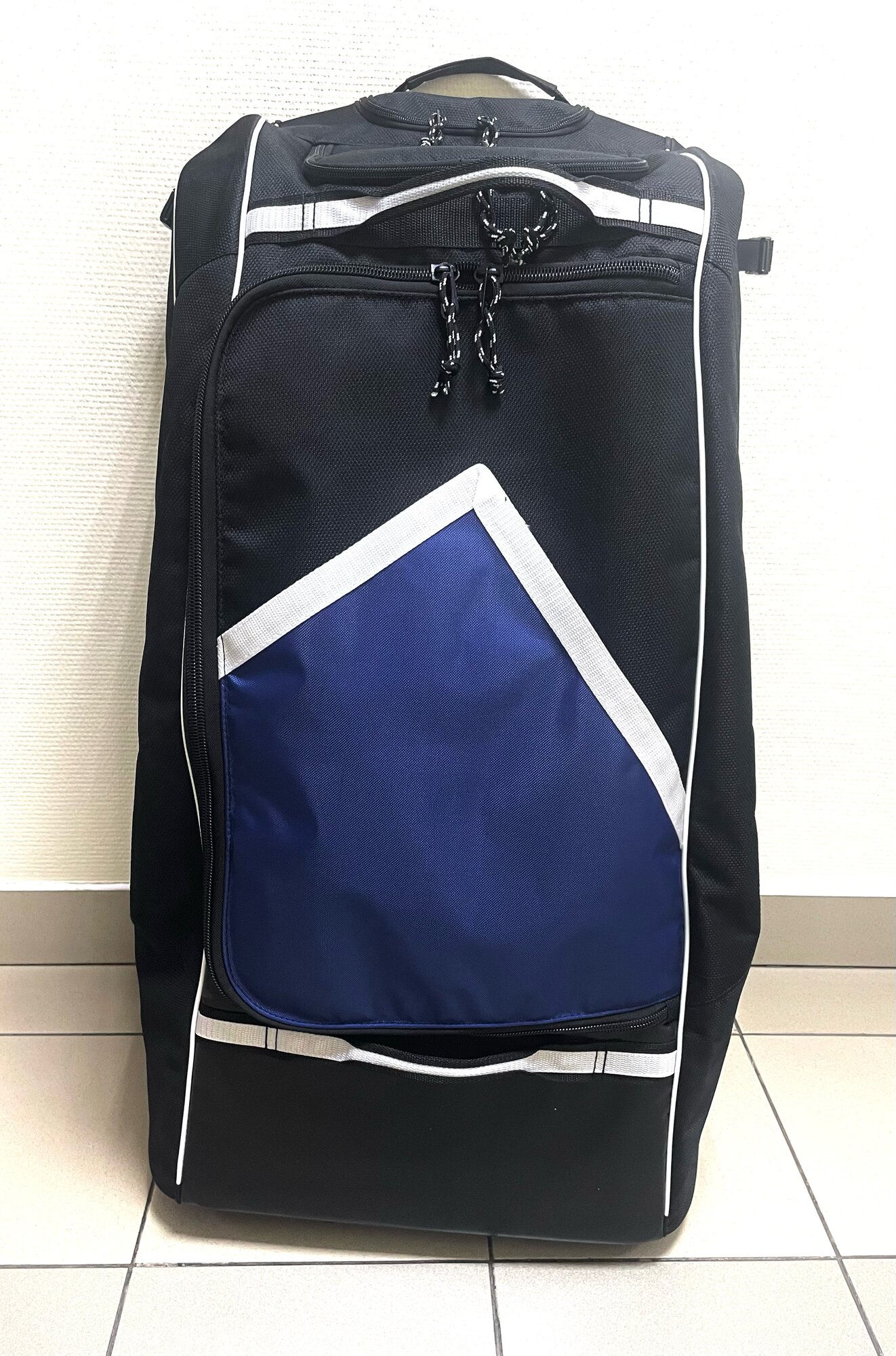 Баул Хоккейный mos-sport для полевого игрока Junior Lait черно-синего цвета (высота 80, ширина 50, глубина 40см) Хоккейный баул на универсальных колесах простых Жесткий каркас, позволяем оставлять его в вертикальном положении. Баул удобен в использовании, так как внутренняя компоновка продумана с учетом сложенной экипировки, поэтому внутренний объем используется максимально эффективно. Все по своим местам — отделение под шлем с верхним размещением, отдельные перегородки на липучках под защиту рук или краги, коньки в карманах с низу, крепления для клюшки, карманы для термобелья и различных мелочей, выдвижная ручка.