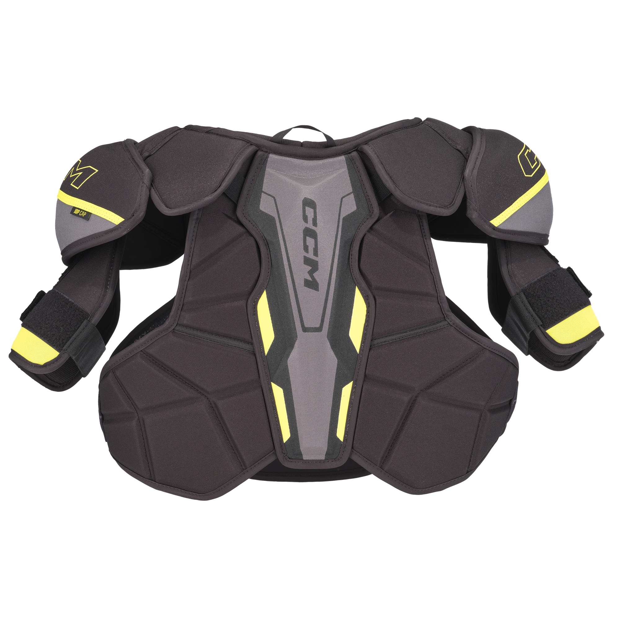 | Дополнительная информация | Как выбрать размер хоккейного нагрудника? Чтобы нагрудник максимально эффективно справлялся с поставленными задачами, он должен подходить хоккеисту по размеру. Для определения параметров экипировки перед покупкой нужно: · Измерить объем груди игрока. При этом возраст и рост являются вторичными показателями. · Сравнить полученные показатели с таблицей размеров производителя. Во время примерки экипировки следите за тем, чтобы между налокотниками и плечевыми элементами протектора нагрудника не было свободного места. Вместе с тем эти два элемента не должны пересекаться друг с другом. Попробуйте подвигаться в экипировке, она не должна сковывать движения, а нагрудник и налокотники – мешать друг другу. Если хоккейный нагрудник сидит слишком свободно, во время движения на теле могут образовываться незащищенные участки, например, во время наклонов. Это повышает риск получения травмы. Если нагрудник перекрещивается с шортами, налокотниками или другими частями защиты – это влияет на маневренность и удобство. В ССМ разработали посадку нагрудника Max Coverage, которая в сочетании с технологией FLEXMOTION обеспечивает защиту элитного уровня без ущерба для комфорта или мобильности. Еще одним способом оценки удобства хоккейного нагрудника перед покупкой считается его примерка с коньками. Для этого нужно принять хоккейную стойку и попробовать поработать клюшкой во всей экипировке. Если в процессе ничего не мешает и вам удобно, значит, нагрудник был выбран правильно. Правильно подобранный размер защиты является залогом качественной, маневренной и безопасной игры. |