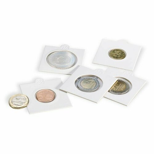 Картонные самоклеющиеся рамки - холдеры, для хранения монет. На белых полях возможно нанесения надписей с информацией о монете.