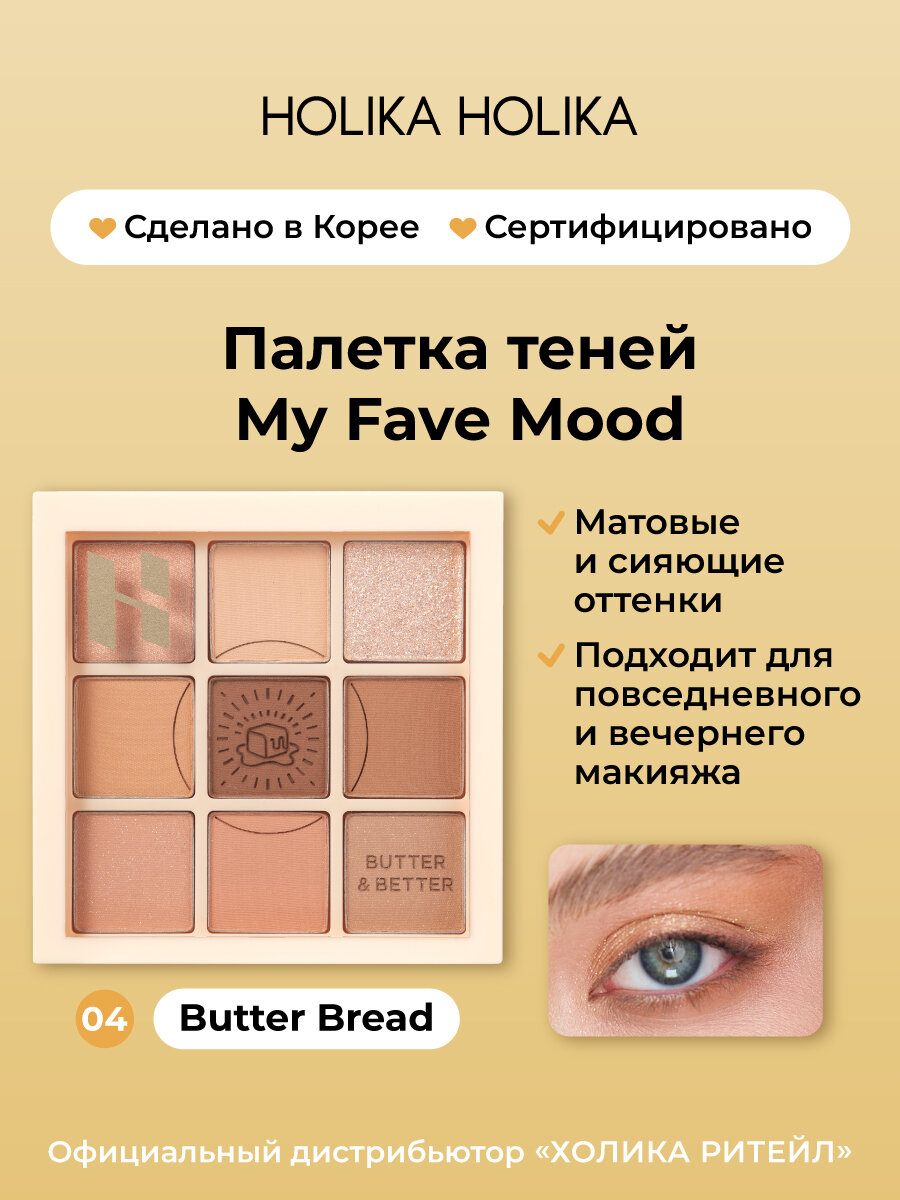 Купить Holika Holika Палетка теней для век, 9 оттенков My Fave Mood Eye Palette 04 Butter Bread с доставкой по всей России.