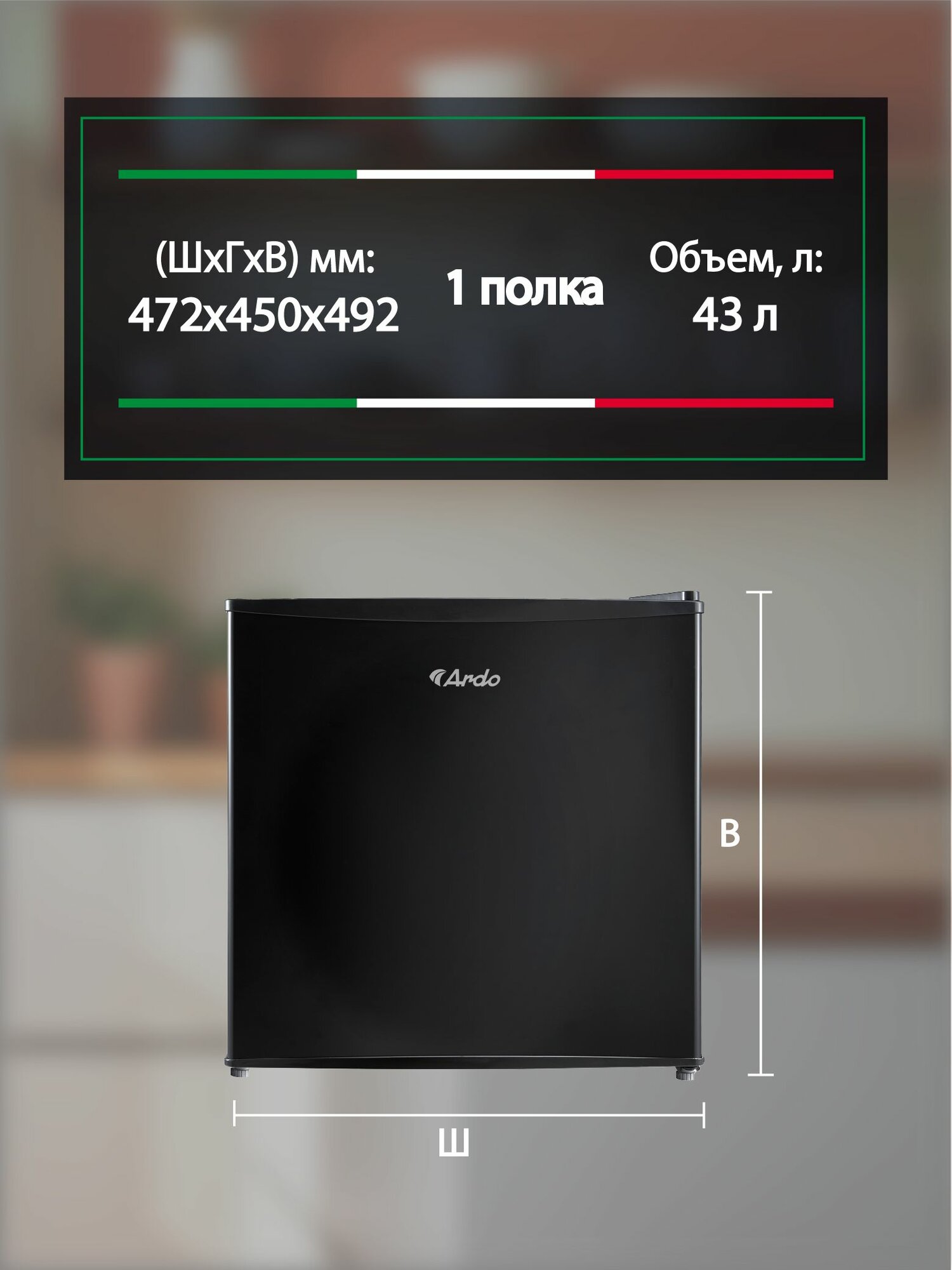 Холодильник Ardo однокамерный ,43 л, Уровень шума 41 дБ, полки из закаленного стекла, низкотемпературная камера, черный: сравнение цен, характеристики, фото, актуальное наличие и цены.