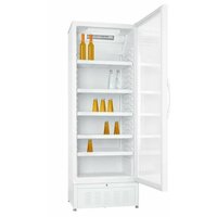 Холодильник имеет одну камеру и одну дверь, которая оснащена перевешиваемой ручкой-скобой и прозрачным полотном двери. Внутри холодильника расположены 5 полок, что позволяет удобно разместить продукты.
