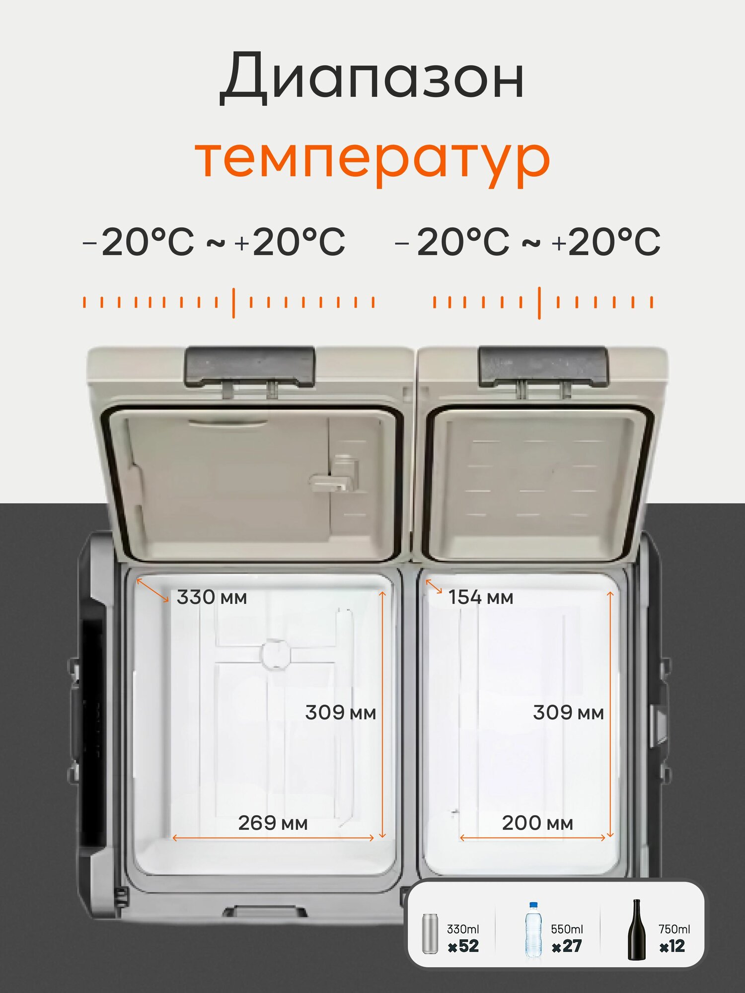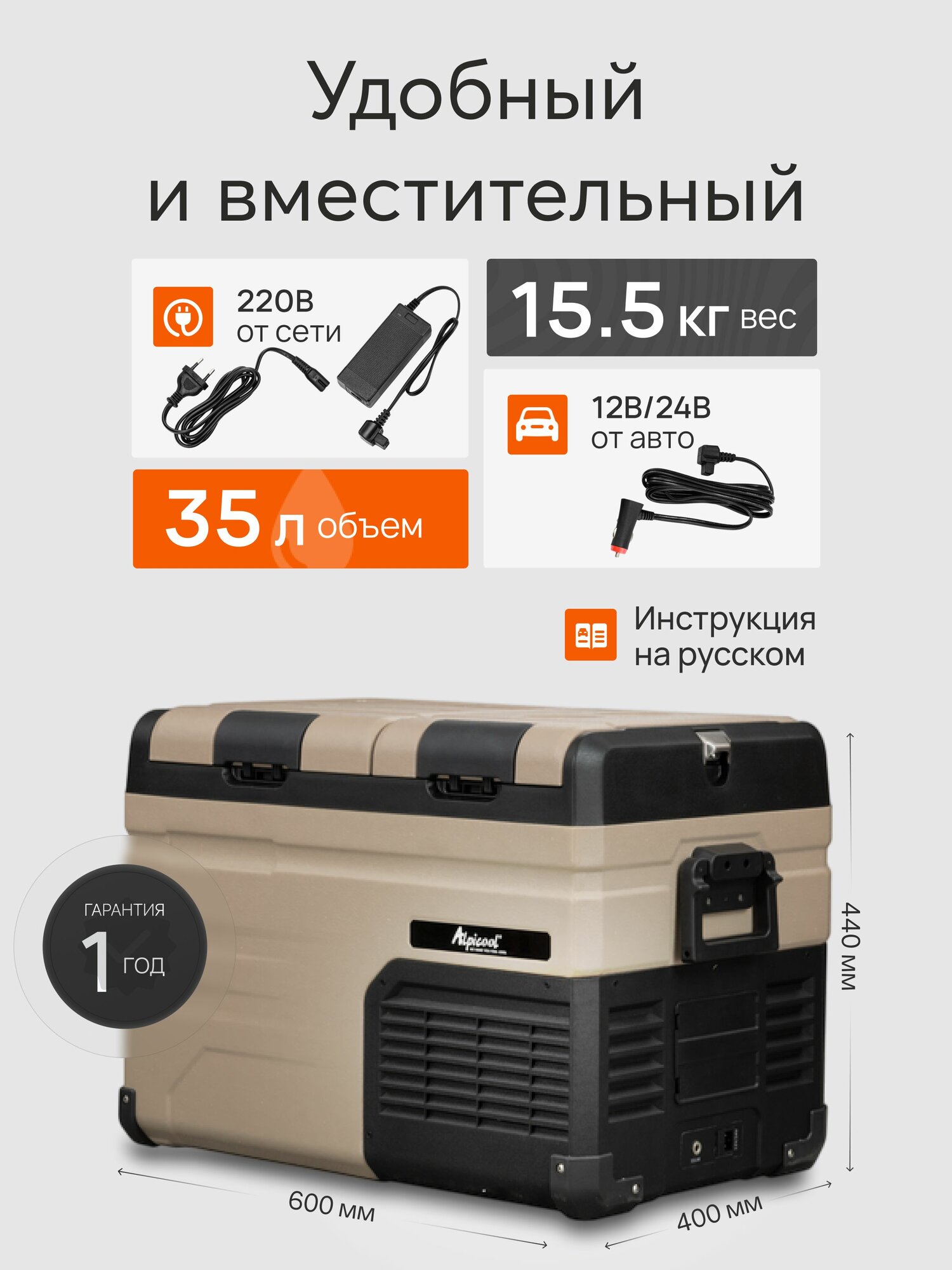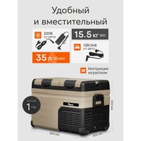 Отличительной особенностью модели является малошумный высокопроизводительный компрессор. Автохолодильник имеет 2 камеры, общий объем камер 35 л. Можно настраивать свой температурный режим в каждой камере отдельно.