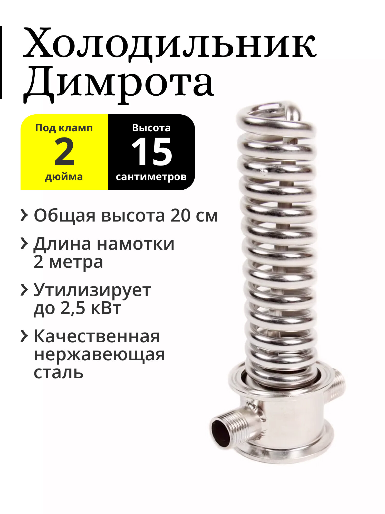 Холодильник Димрота предназначен для эффективного охлаждения и конденсации спиртовых паров во время перегонки. Представляет собой спираль с водяным охлаждением.