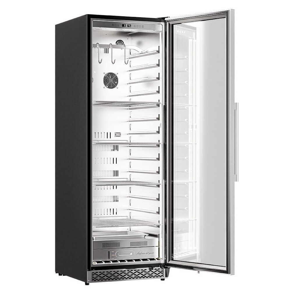 Благодаря широкому температурному диапазону от +1 до +25°C, можно точно настроить параметры для каждого вида мяса Корпус из стали и стеклянная дверь обеспечивают не только практичность, но и презентабельный внешний вид, который впишется в любой интерьер.