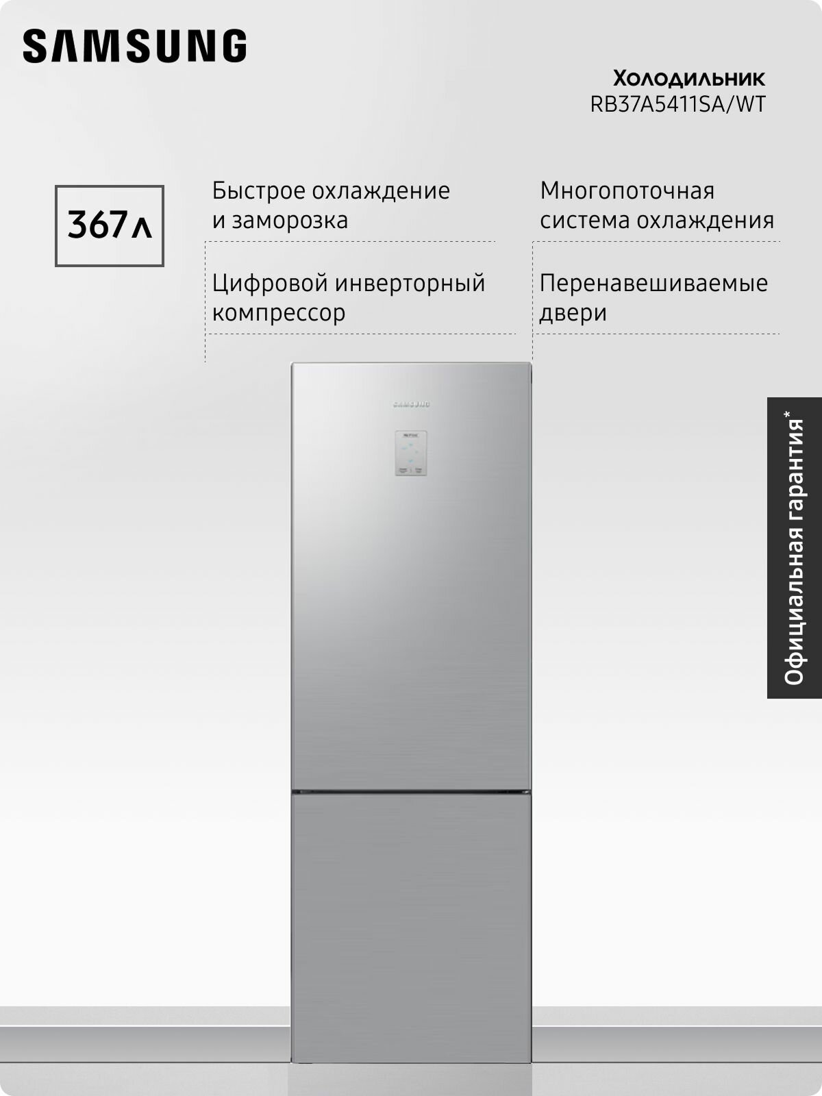 Холодильник двухкамерный Samsung RB37A5411SA/WT, 367 л, No Frost, Metal Cooling, дисплей, с зоной контроля влажности, металлический графит: сравнение цен, характеристики, фото, актуальное наличие и цены.