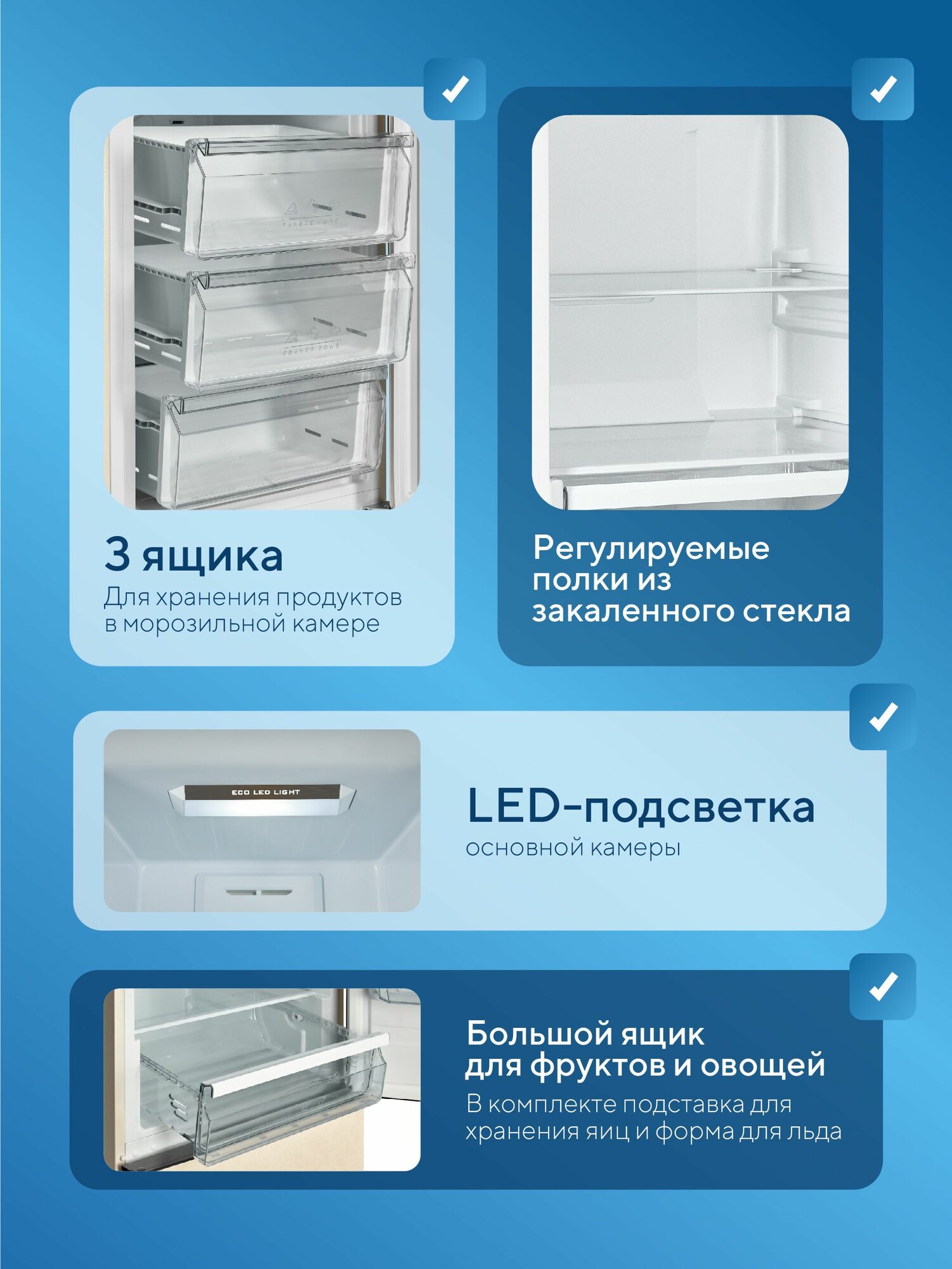 | Количество полок в холодильном отделении | 4 |
