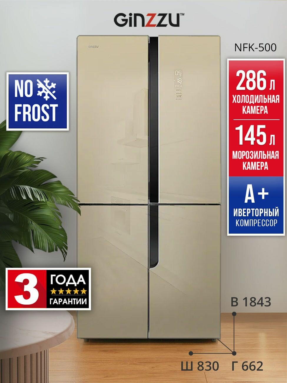 Холодильник Ginzzu NFK-500, шампань стекло: сравнение цен, характеристики, фото, актуальное наличие и цены.