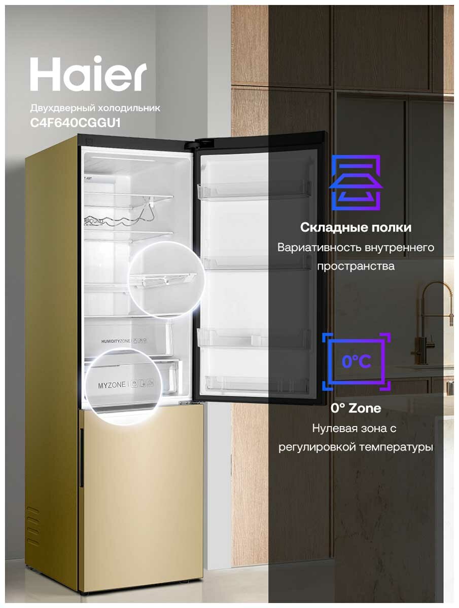 Двухкамерный холодильник Haier C4F640CGGU1 No frost, золотистый: сравнение цен, характеристики, фото, актуальное наличие и цены.