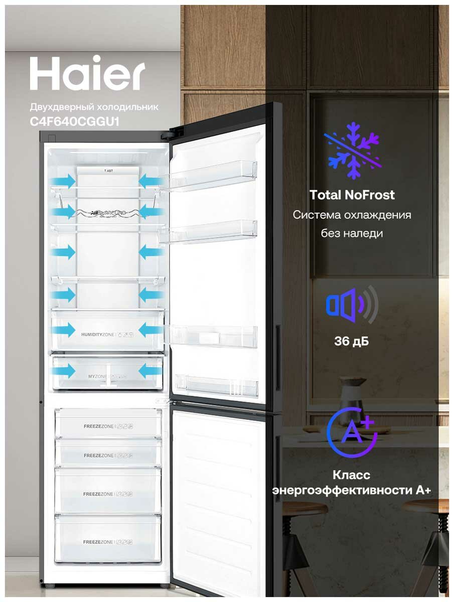 Купить Двухкамерный холодильник Haier C4F640CGGU1 No frost, золотистый с доставкой по всей России.