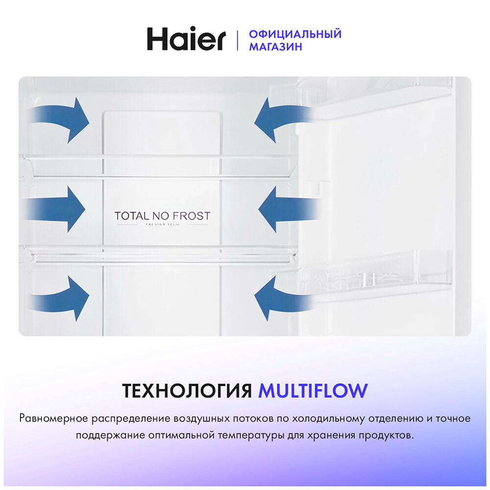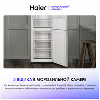 Холодильник Haier CEF537AWD − двухкамерный холодильник в белом корпусе, который обладает размерами 59.5x200x65 см. Морозильная камера располагается в нижней части корпуса, что обеспечивает более легкий и удобный поиск продуктов. Благодаря системе No Frost внутри камер не образуется иней, что обусловлено непрерывной циркуляцией холодного воздуха: в камерах холодильника создаются оптимальные условия для сохранения продуктов. Общий объем Haier CEF537AWD соответствует 368 л: на холодильное отделение отводится 263 л, а на морозильную камеру − 105 л. Используемое внутри, LED-освещение позволяет получить хороший обзор продуктов внутри холодильника. Лампочки светодиодов обладают наибольшей долговечностью и экономичностью, не оказывают влияния на температуру. Особенность аппарата в поддержке технологии Multi Air Flow, которая распределяет равномерно воздушные потоки по пространству холодильного отделения, точно поддерживая оптимальные показатели температуры. Для вариативности внутреннего пространства используются складные полки.