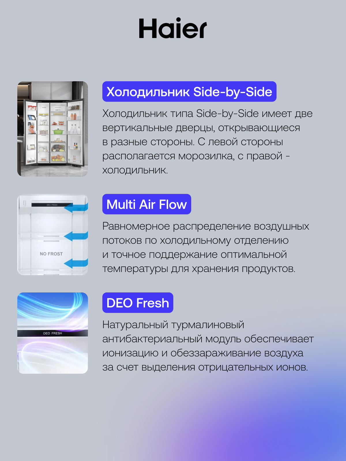| Особенности конструкции | Side by Side, антибактериальное покрытие, дисплей, перевешиваемые двери |