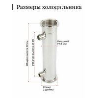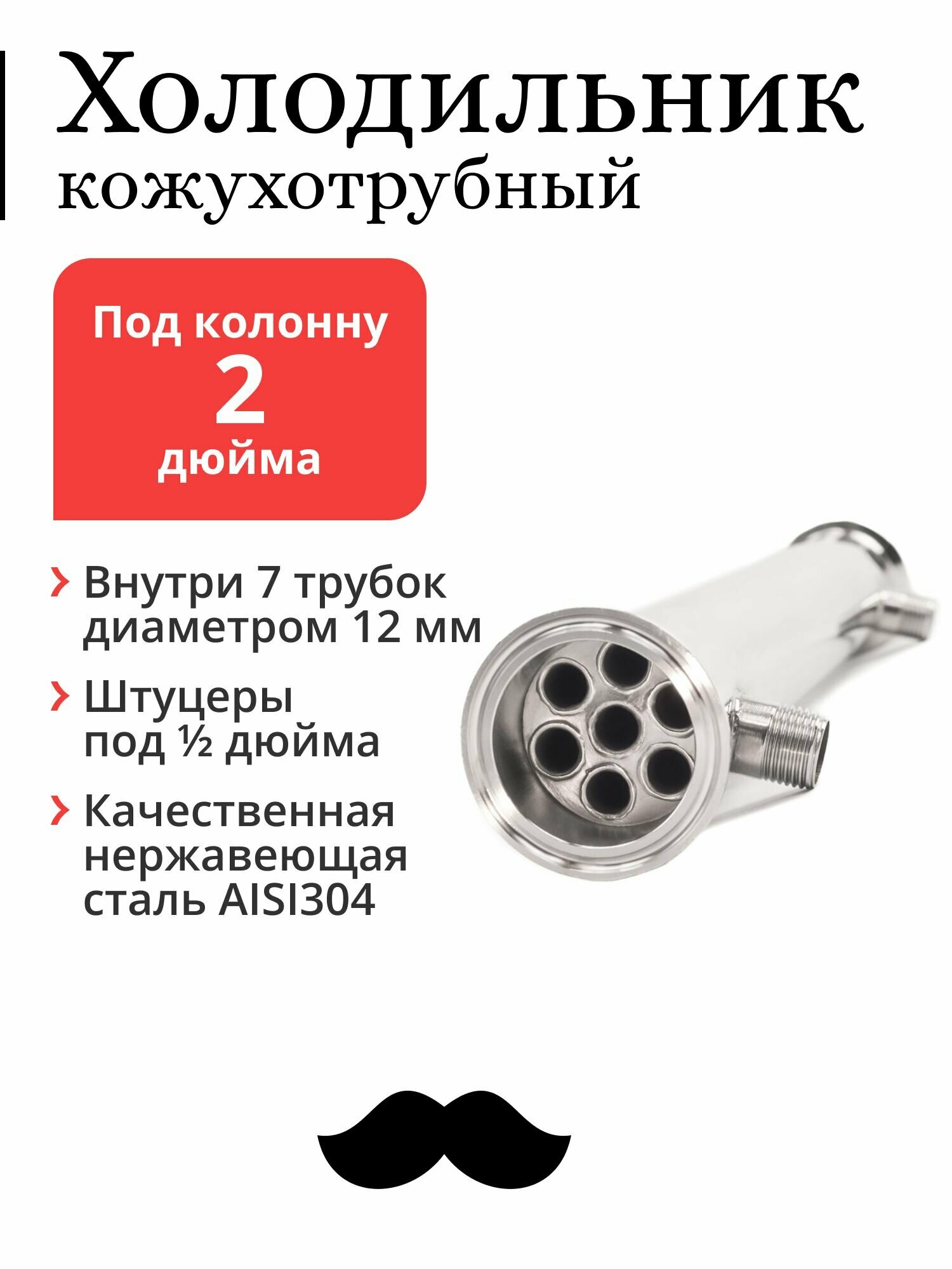 Холодильник Mendeleeff, кожухотрубный, для колонны самогонного аппарата (дистиллятора) 2 дюйма, высота 400 мм, трубки 7 x 12 мм: сравнение цен, характеристики, фото, актуальное наличие и цены.