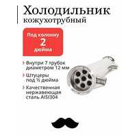 Купить Холодильник Mendeleeff, кожухотрубный, для колонны самогонного аппарата (дистиллятора) 2 дюйма, высота 400 мм, трубки 7 x 12 мм с доставкой по всей России.