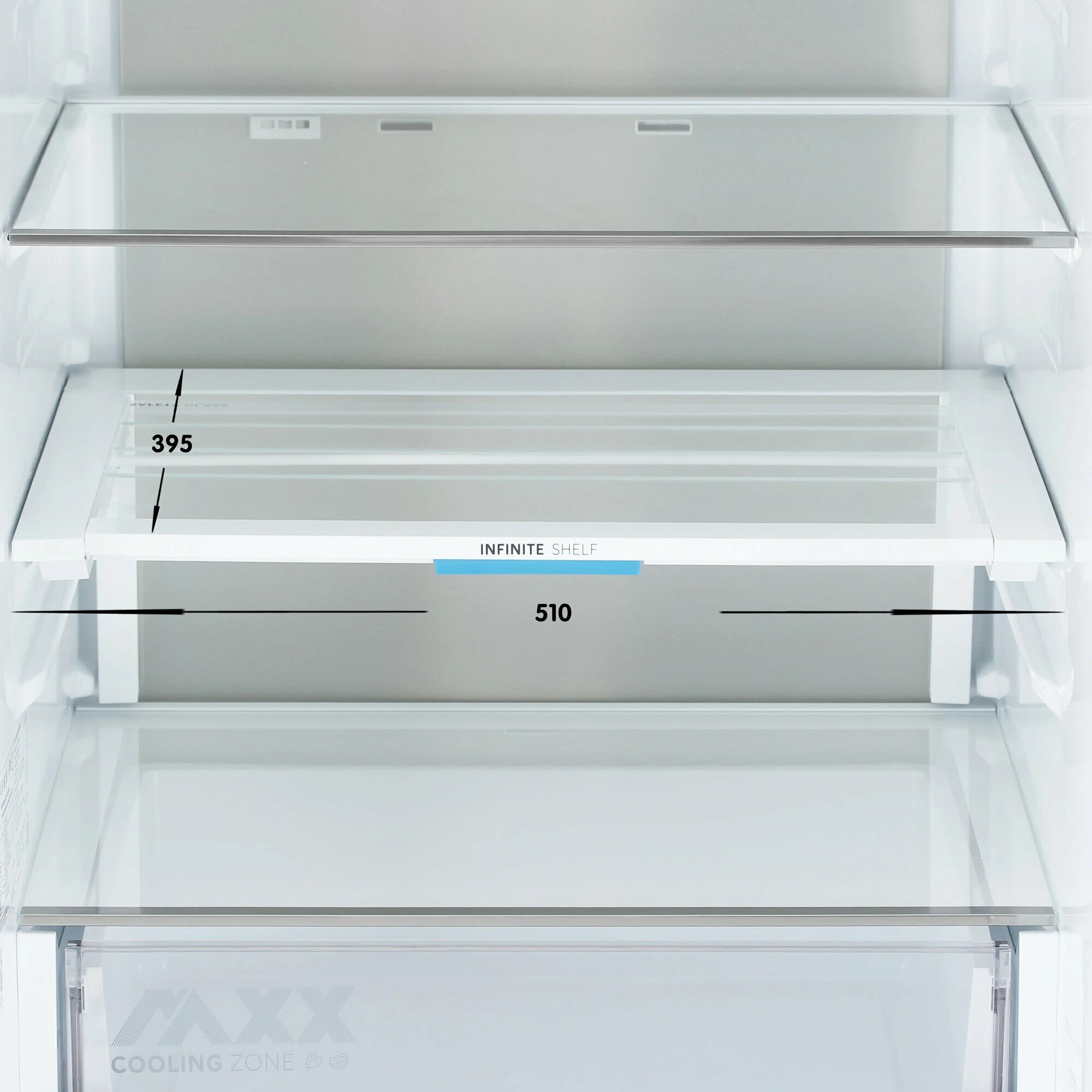 Холодильник оснащен системой No Frost, которая предотвращает образование льда и инея на стенках, что значительно упрощает процесс ухода за устройством.