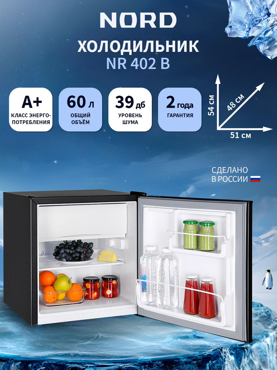 Холодильник NORD NR 402 B, объем 60 л, перенавешиваемая дверь, однокамерный, черный матовый: сравнение цен, характеристики, фото, актуальное наличие и цены.