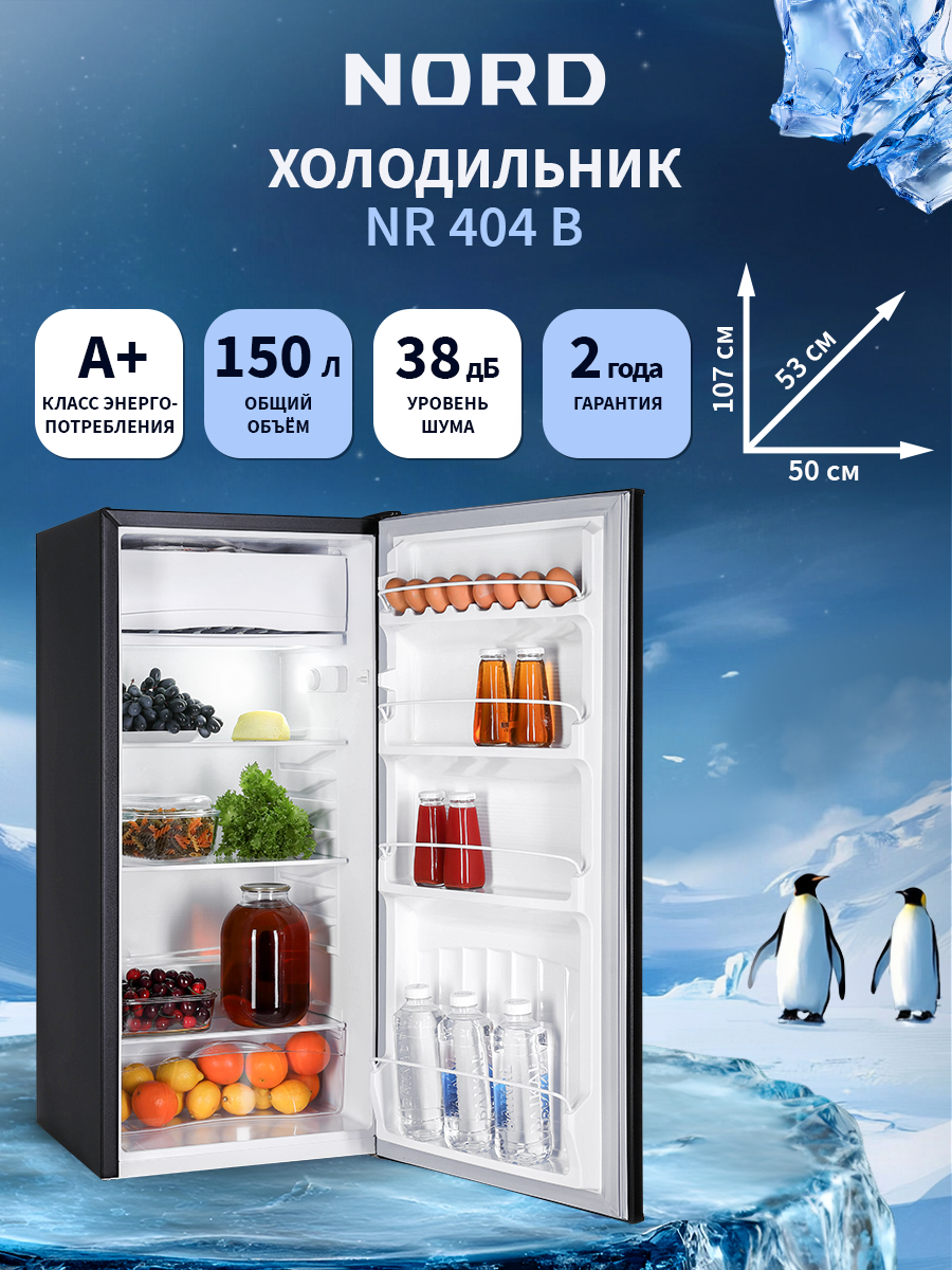 Холодильник NORD NR 404 B, объем 150 л, перенавешиваемая дверь, НТО, черный матовый: сравнение цен, характеристики, фото, актуальное наличие и цены.