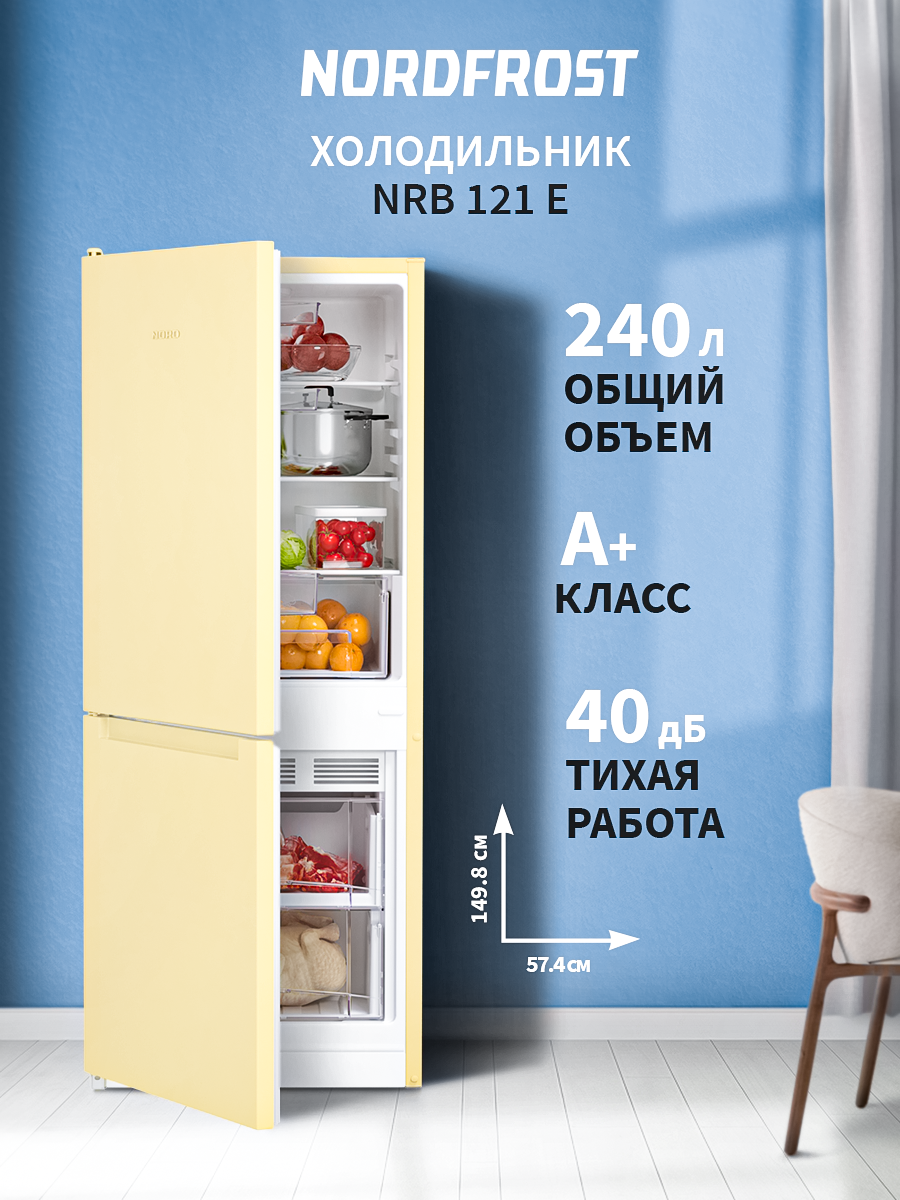 Купить Холодильник NORDFROST NRB 121 Е двухкамерный, 240 л объем, бежевый с доставкой по всей России.