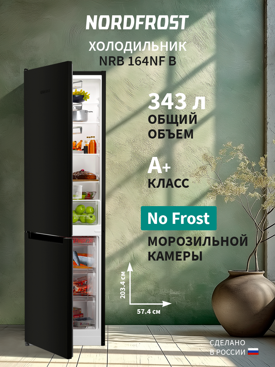 Холодильник NORDFROST NRB 164NF B двухкамерный, 343 л объем, 203 см высота, черный матовый: сравнение цен, характеристики, фото, актуальное наличие и цены.