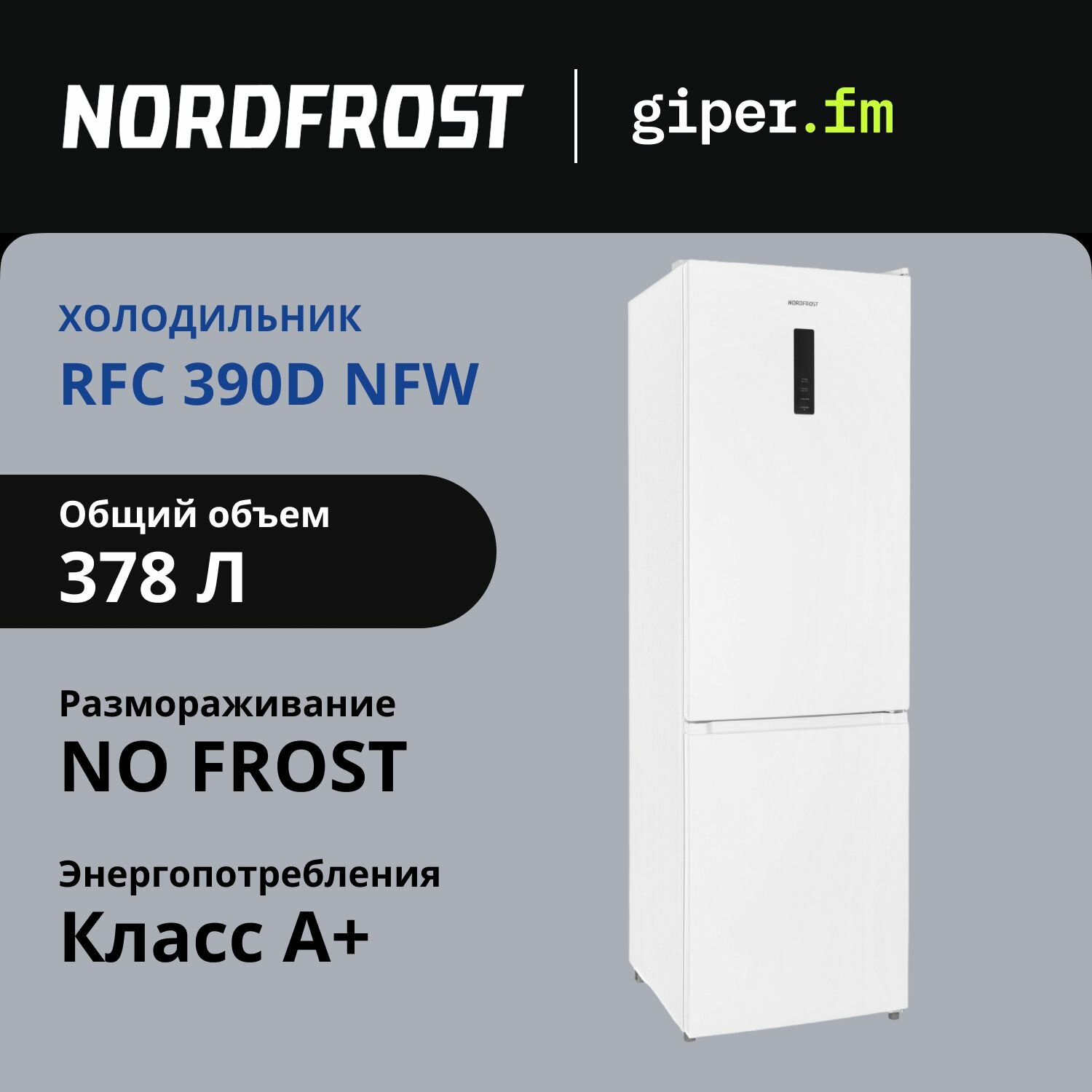 Холодильник двухкамерный Nordfrost RFC 390D NFW, белый, 378 л, Total No Frost, суперохлаждение, суперзаморозка: сравнение цен, характеристики, фото, актуальное наличие и цены.