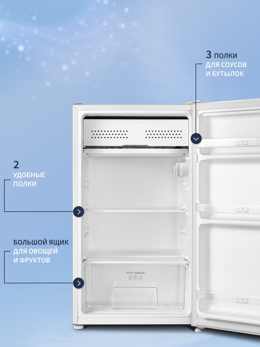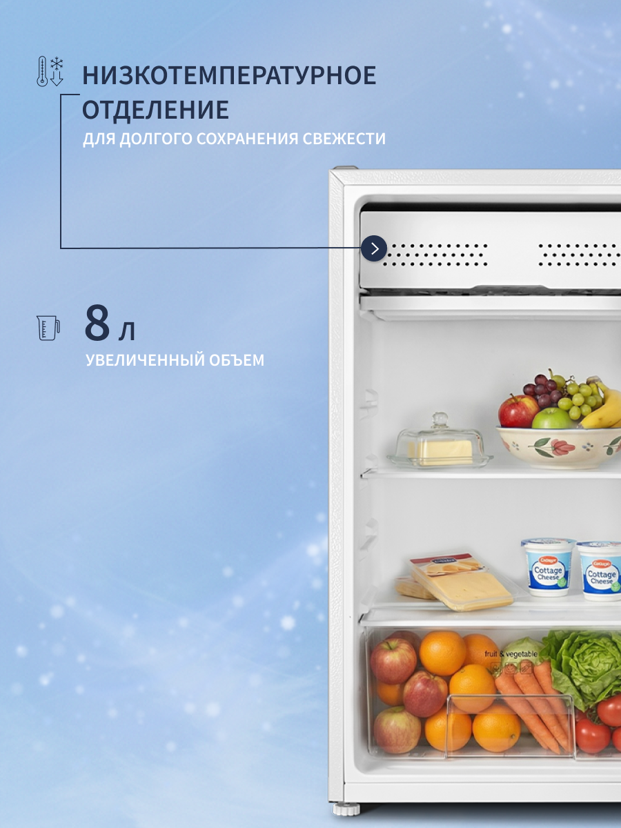 Купить Холодильник однокамерный RF 90 W с НТО, объем 92 л, система размораживания DeFrost, белый с доставкой по всей России. Холодильник однокамерный RF 90 W с НТО, объем 92 л, система размораживания DeFrost, белый: сравнение цен, характеристики, фото, актуальное наличие и цены.