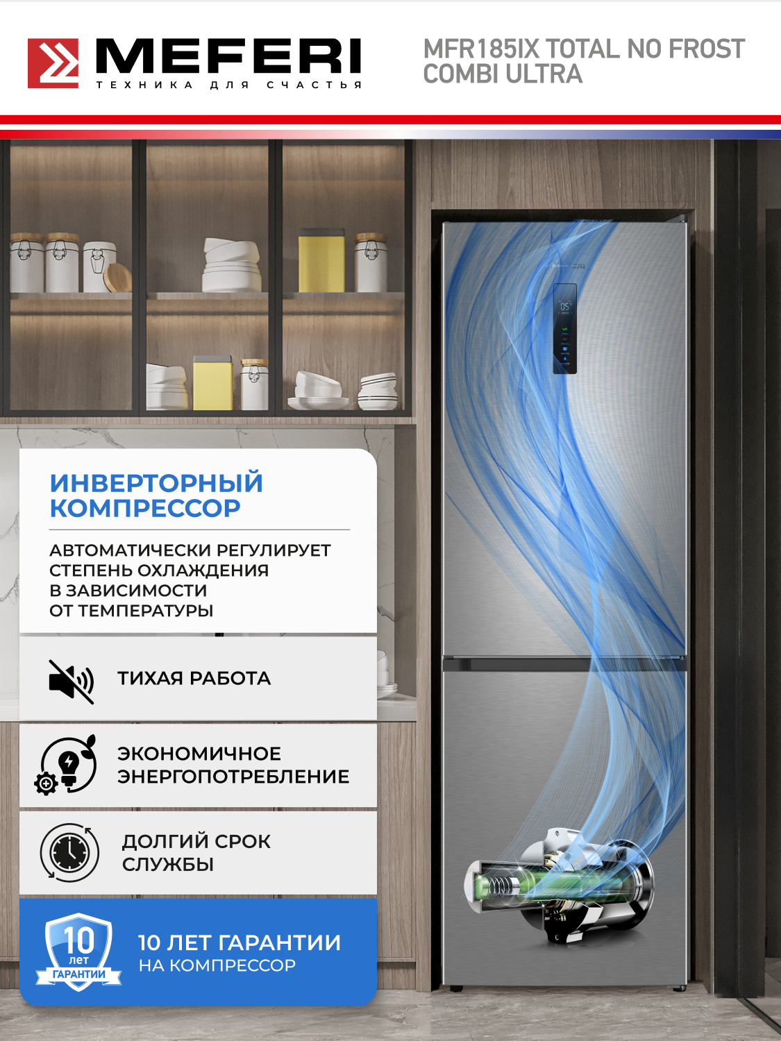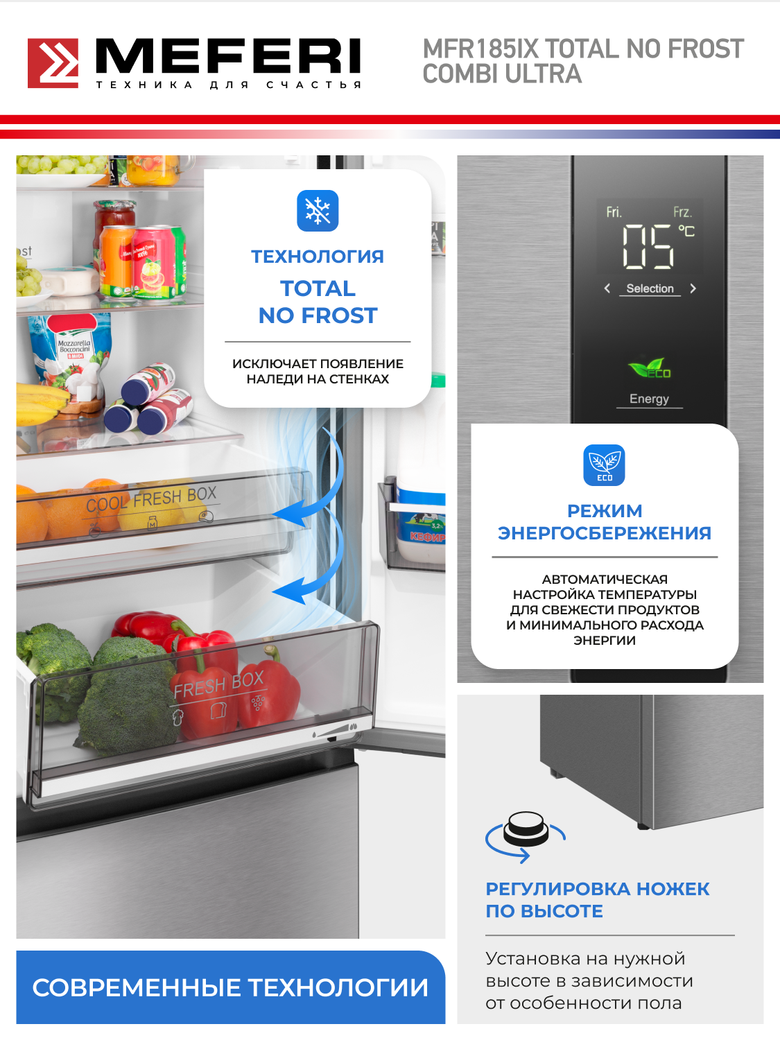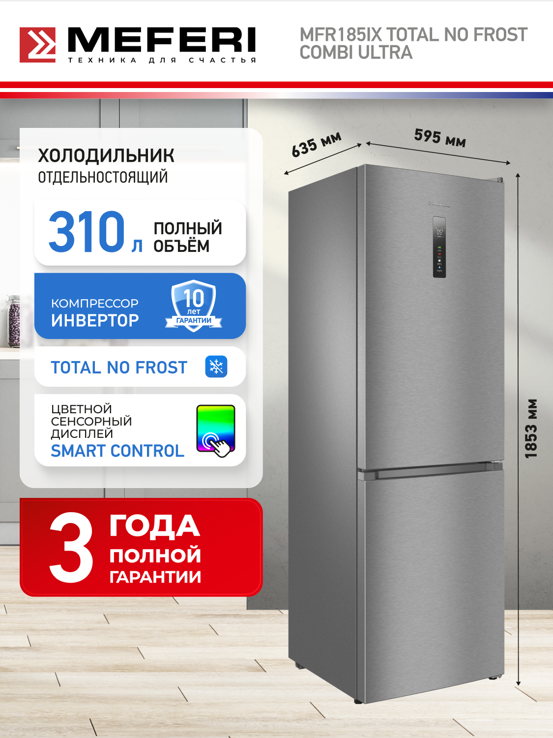 Купить Холодильник отдельностоящий с инвертором MEFERI MFR185IX TOTAL NO FROST COMBI ULTRA с доставкой по всей России.